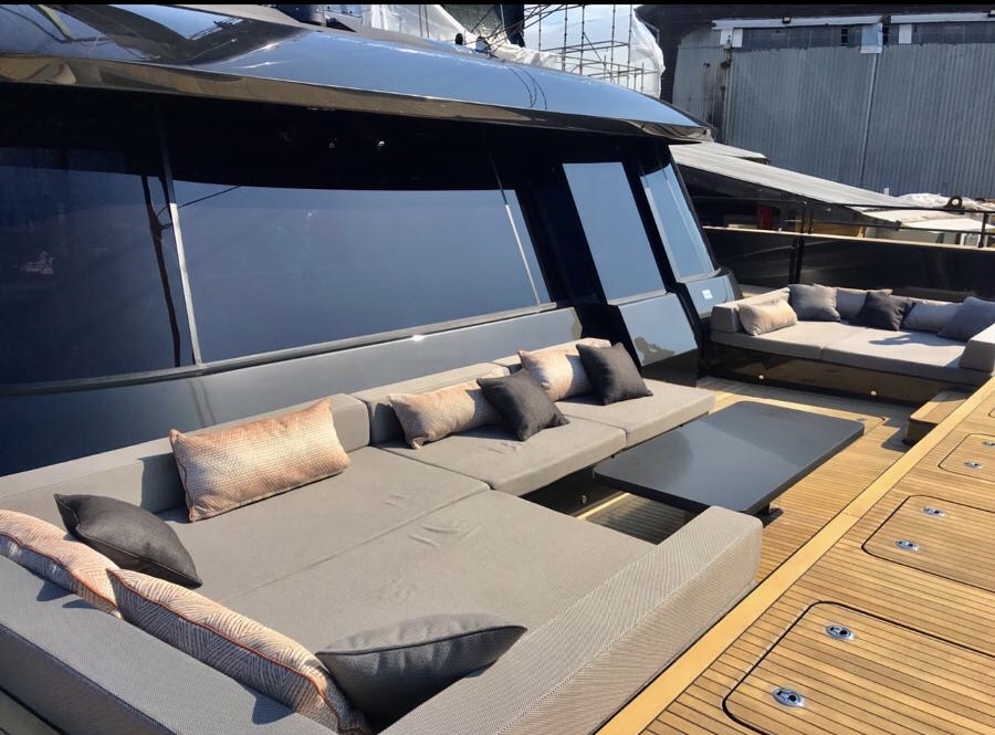 Two stairways lead down to the hydraulic swim platform for easy access in and out o the water, and a port stairway connects to the flybridge above.