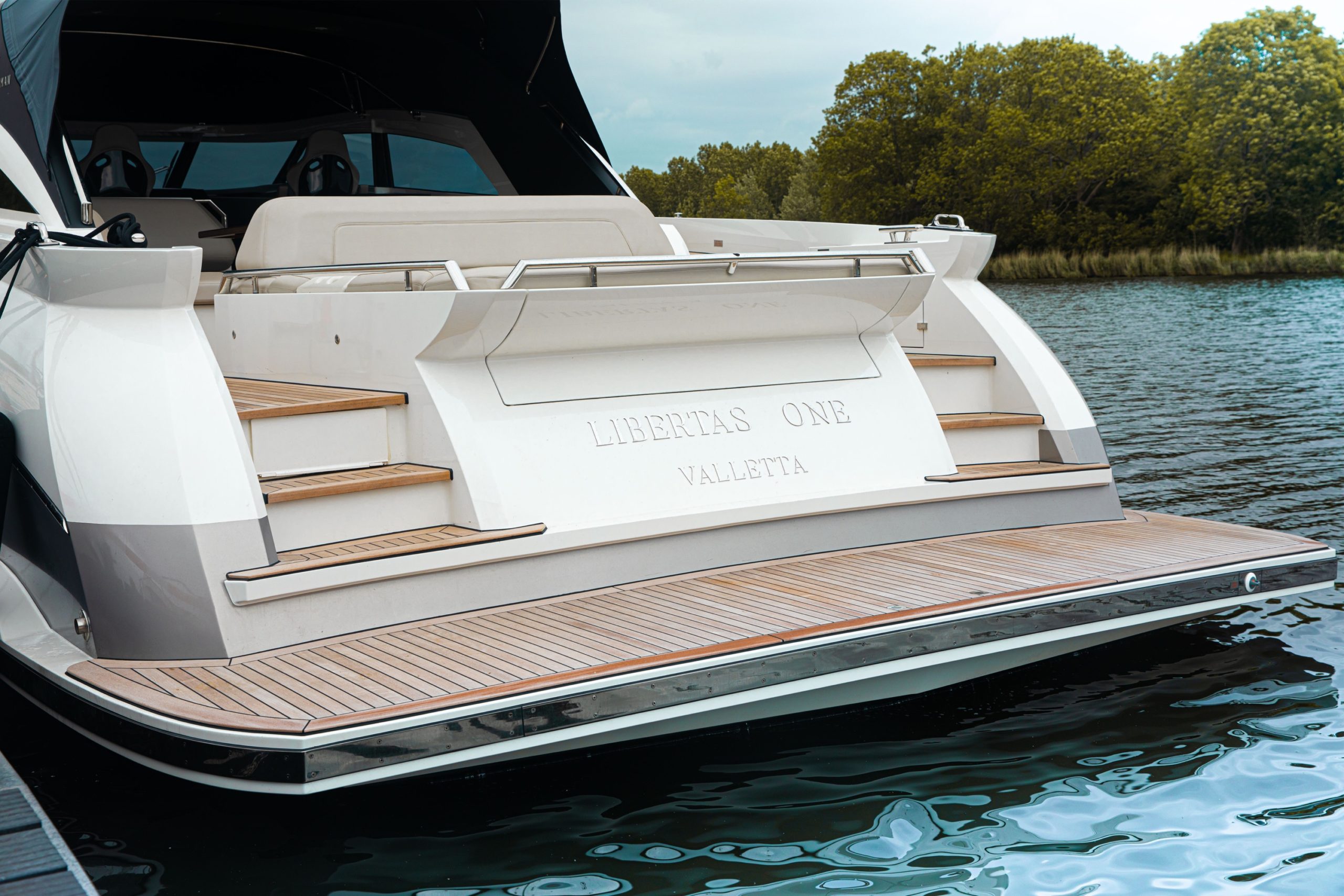 Two stairways lead down to the lower deck swim platform for easy access to the water toys and the sea.