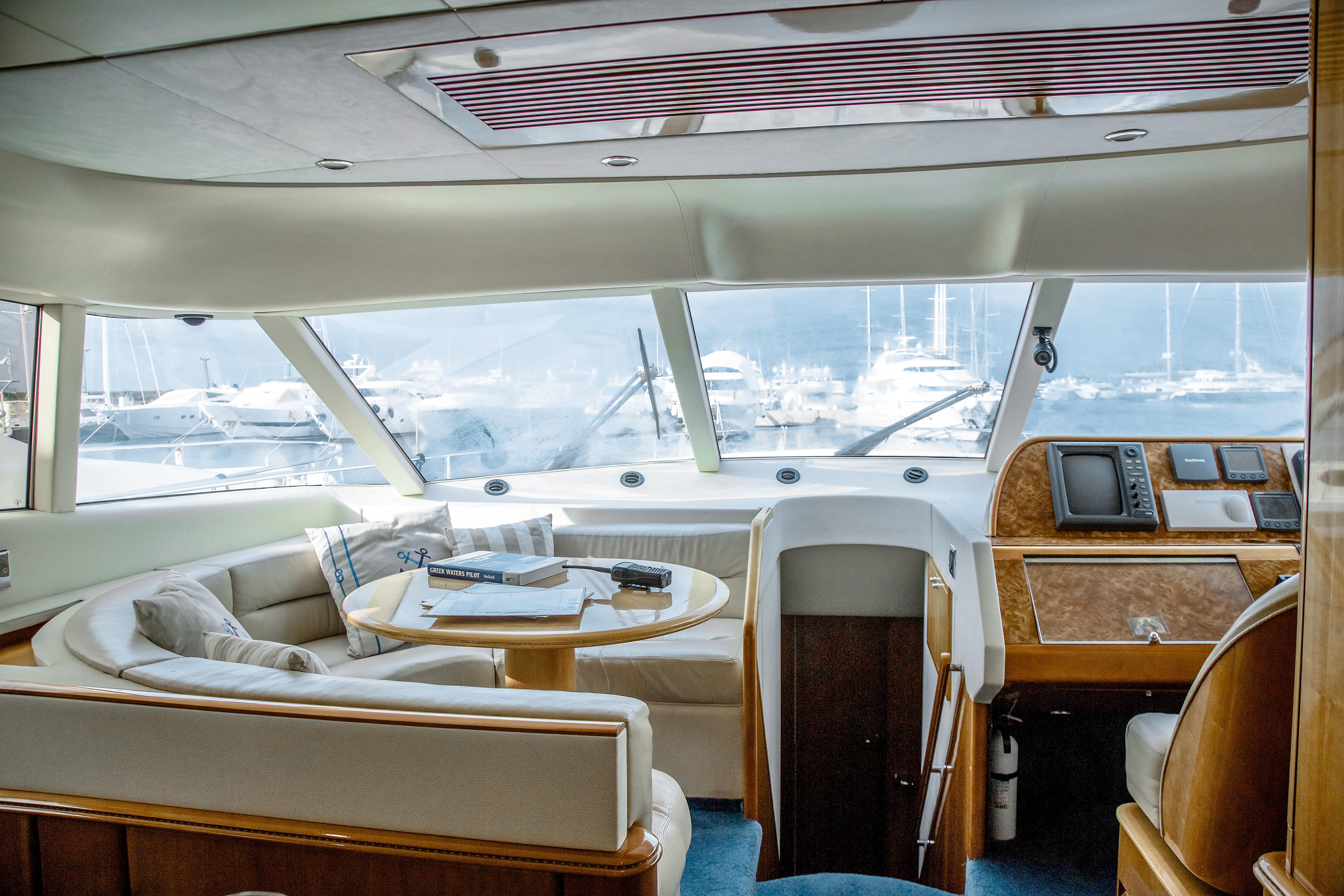 shipyard Princess Yachts, built in 2003 with a 2019 refit. She features a variety of sunbathing spots, with a wonderful flybridge seating area providing guests with incredible 360 views of the surroundings. Her 2 x 1300 HP MAN engines allow for a fast maximum speed of 25 knots, and a cruising speed of 21 knots.