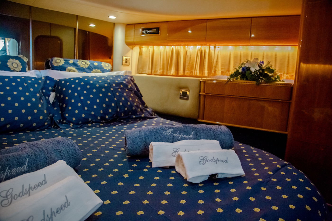 NOTABLE FEATURES OF GODSPEED: ~Fast max speed of 25 knots ~Plenty of sunbathing areas ~Air conditioning ~WiFi