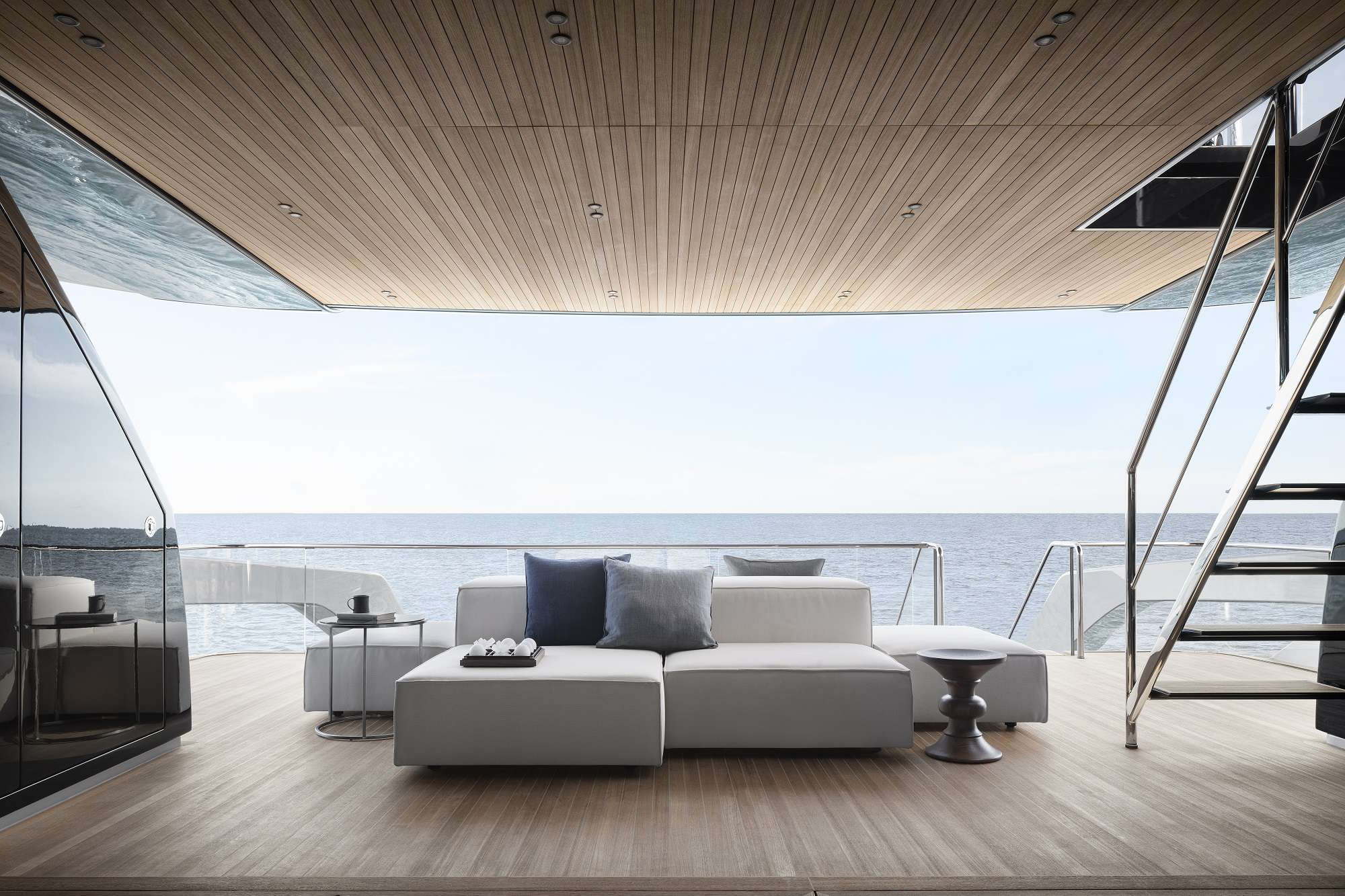 This innovative and spacious superyacht offers elegant accommodation for up to eight guests in four cabins, with further cabins providing overnight stay for the permanent crew of four.