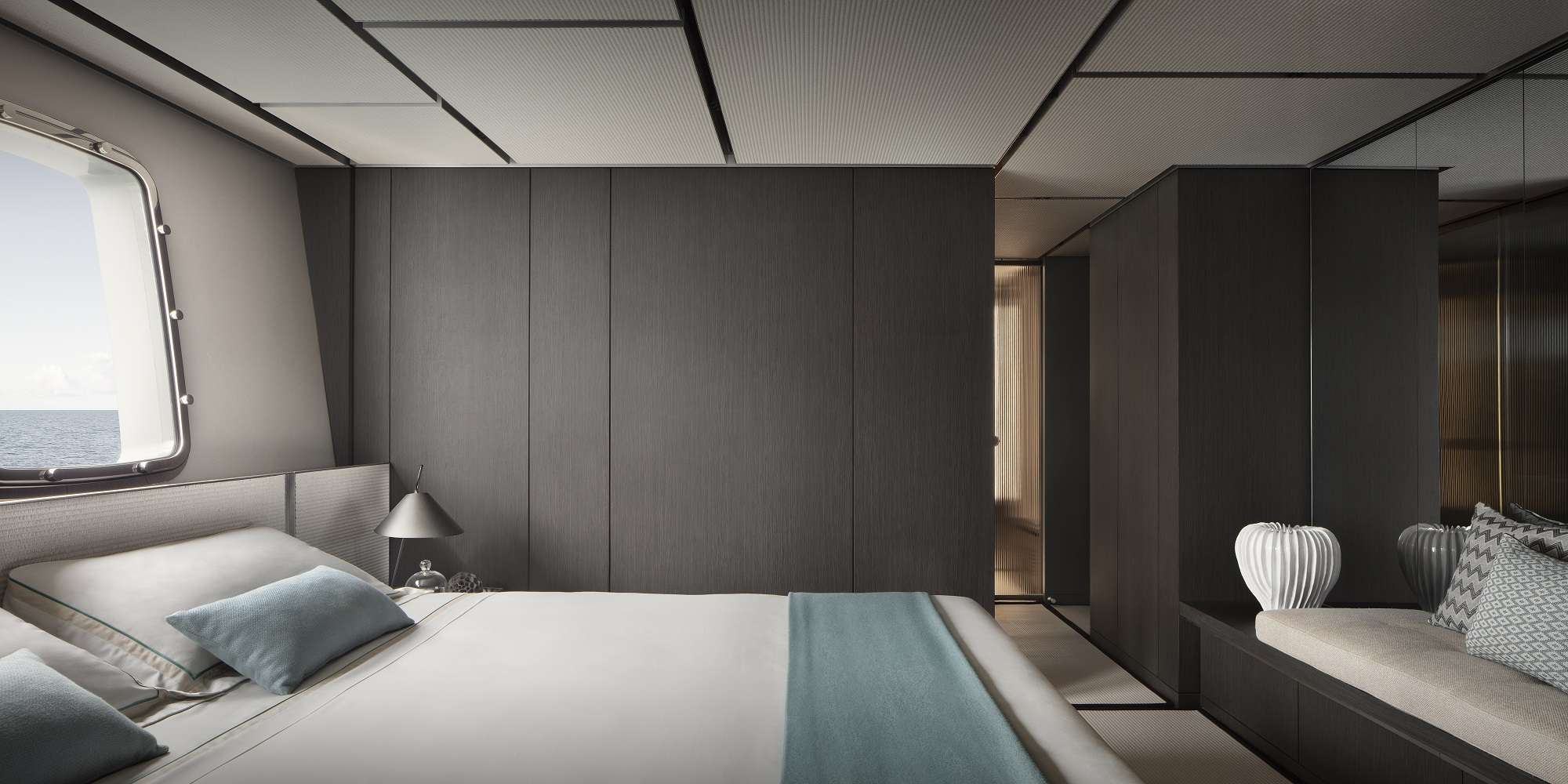 This innovative and spacious superyacht offers elegant accommodation for up to eight guests in four cabins, with further cabins providing overnight stay for the permanent crew of four.
