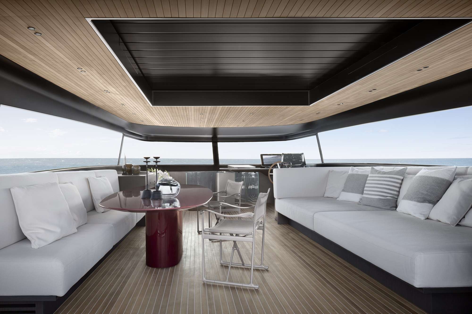 This innovative and spacious superyacht offers elegant accommodation for up to eight guests in four cabins, with further cabins providing overnight stay for the permanent crew of four.
