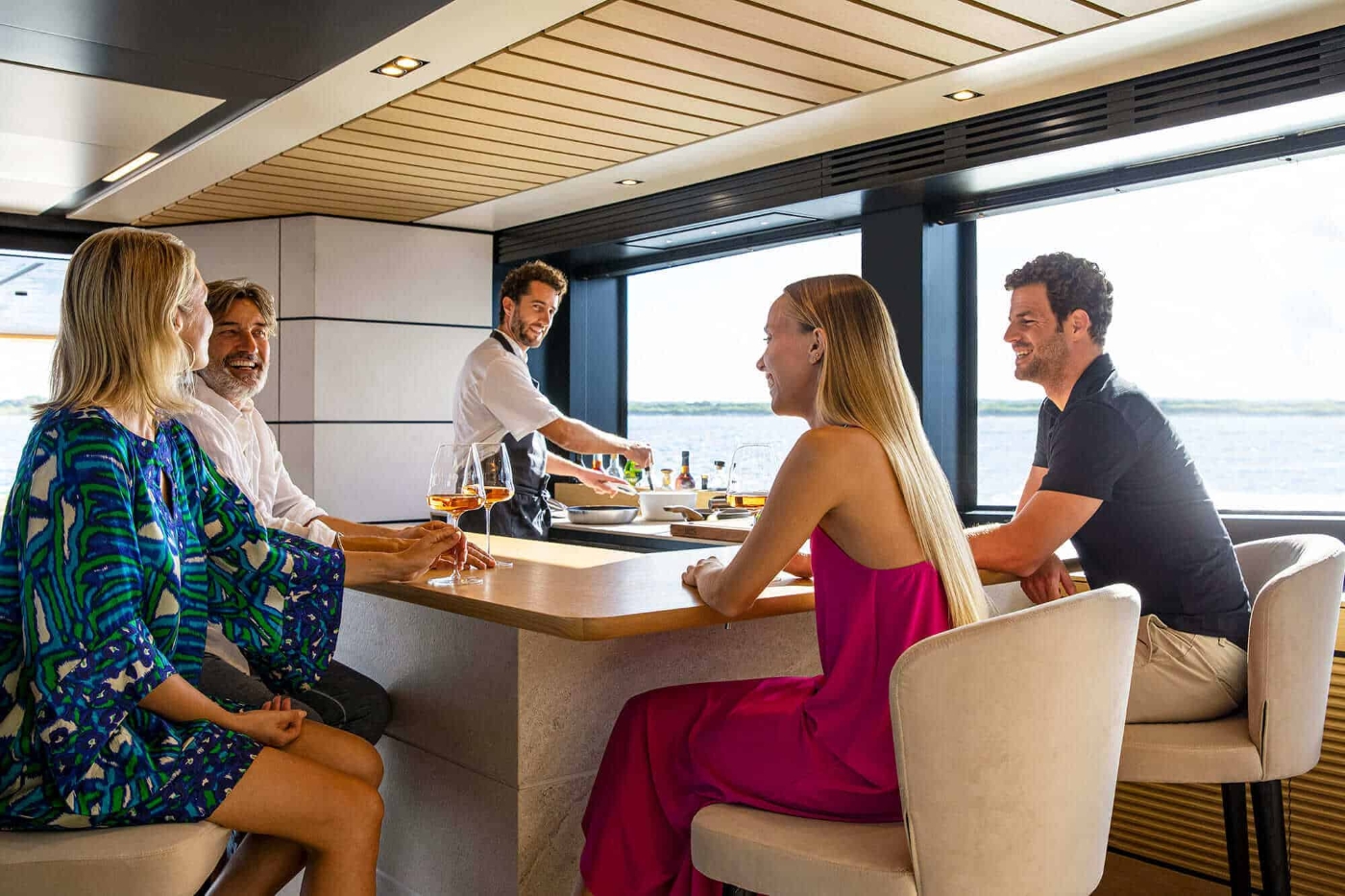 The exterior styling is the work of Luca Bassani from Monegasque in collaboration with the Ferretti Group's Engineering Department, the naval architecture by Laurent Giles NA, and interior styling from A. Vallicelli & C Studio.