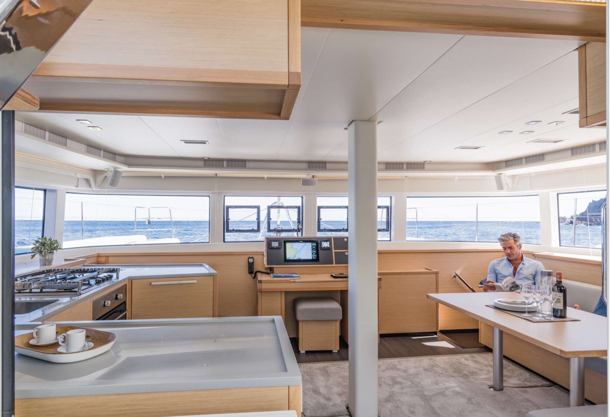 She features generous living spaces thanks to her beam of 8.60 metres (28' 3"), including an excellent open plan main salon featuring galley and dinette. Accommodation is for 8 guests over 4 en-suite cabins, which all feature queen beds, and her crew of 2 will ensure guests have a fabulous stay.