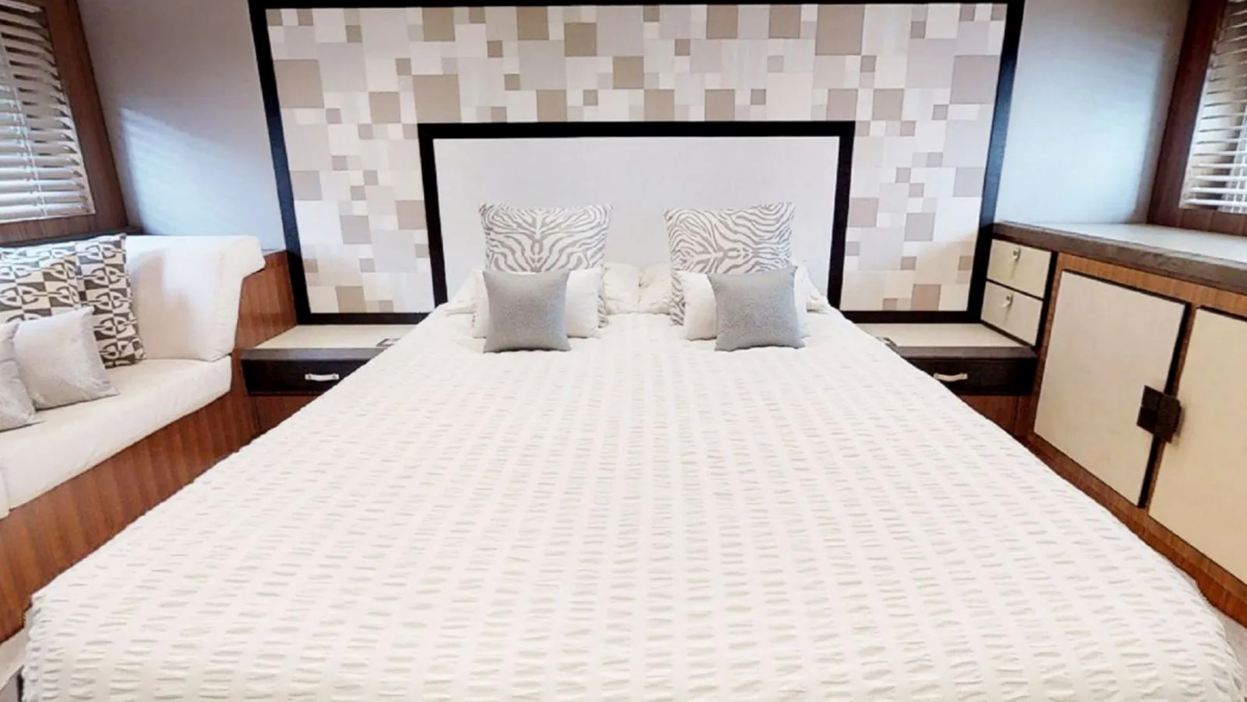 Glass sliding doors lead out onto the main deck aft, and can be opened for a greater connection to the location.