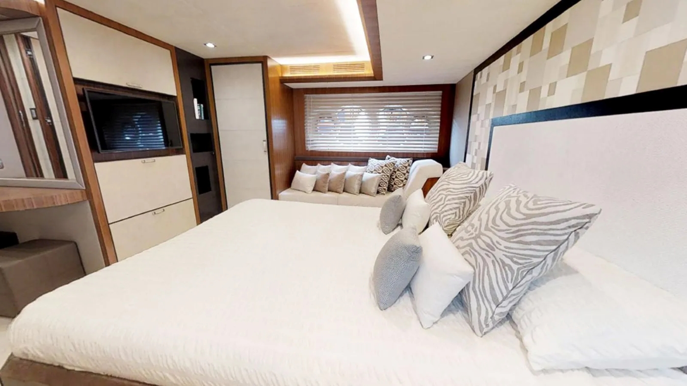 Glass sliding doors lead out onto the main deck aft, and can be opened for a greater connection to the location.