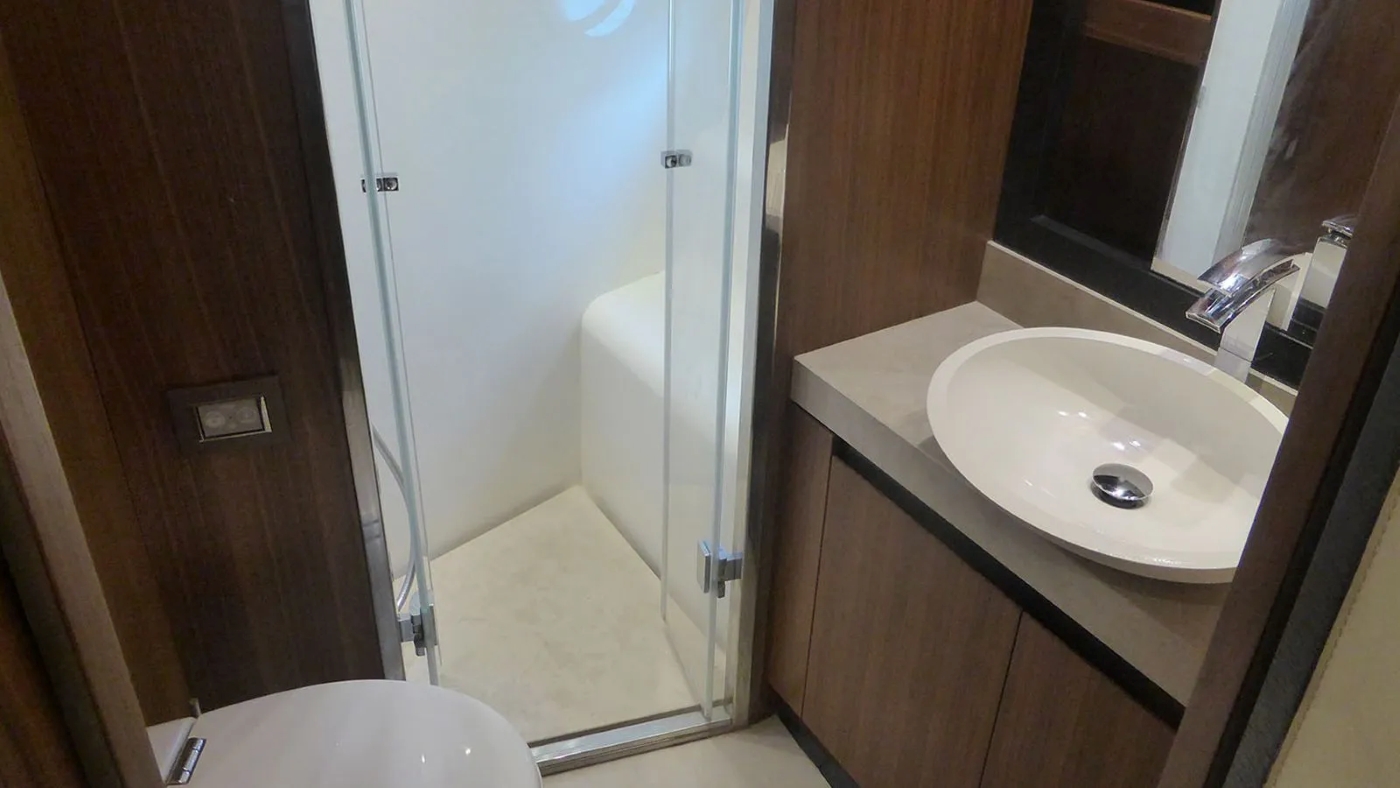 Glass sliding doors lead out onto the main deck aft, and can be opened for a greater connection to the location.