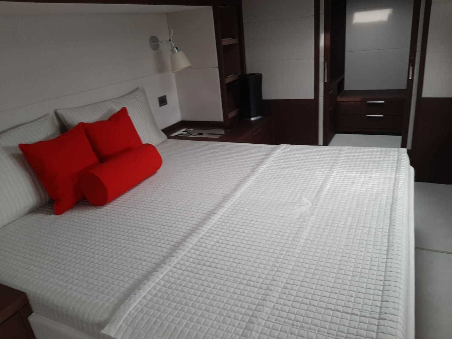 The guest and crew cabins are placed in the port and starboard hulls, leaving the central area dedicated to indoor socialising.
