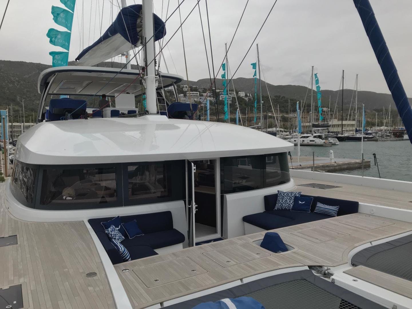 Another sofa is placed along the stern, and two stairways lead to the hydraulic aft swim platform for easy access in and out of the water.