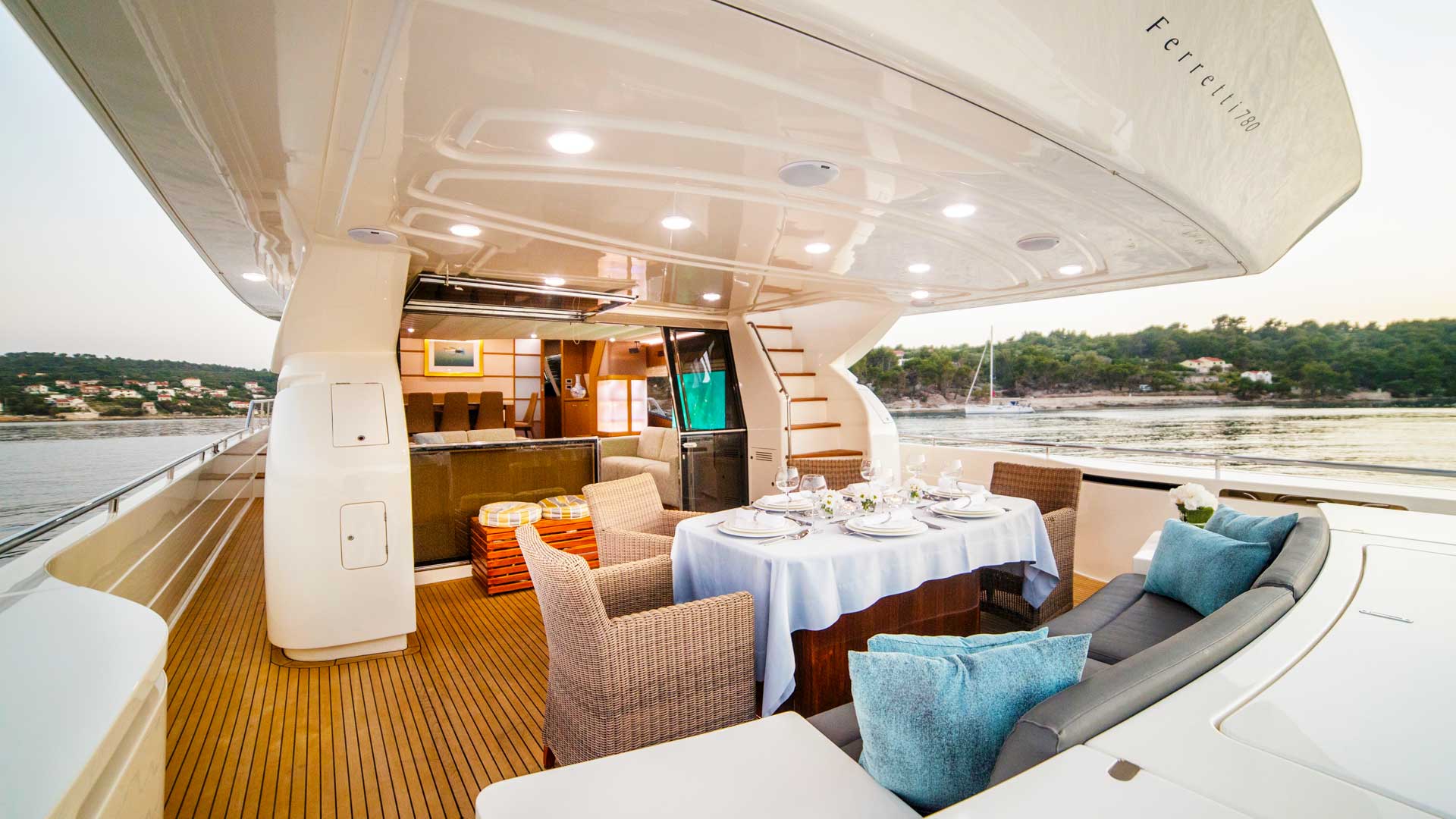 Ferretti Yacht ORLANDO L provides yacht charters in The Mediterranean, Directory, Slovenia, Montenegro, East Med, Dubrovnik, and Croatia.