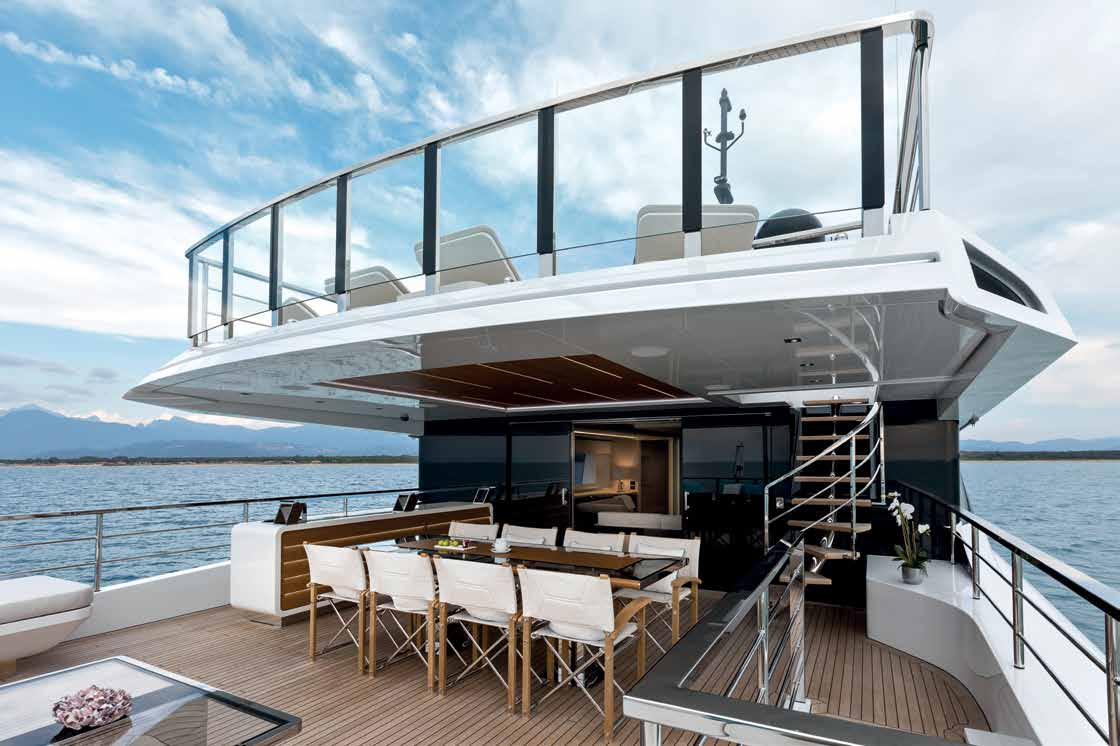 4EVA: ~Up to 30 guests for quayside events ~Foredeck infinity pool ~Sundeck wet bar ~Beach club with wet bar ~Skylounge cinema ~Abundant sunbathing areas ~Extensive water toys selection ~Massive cruising range of 4,500 ...