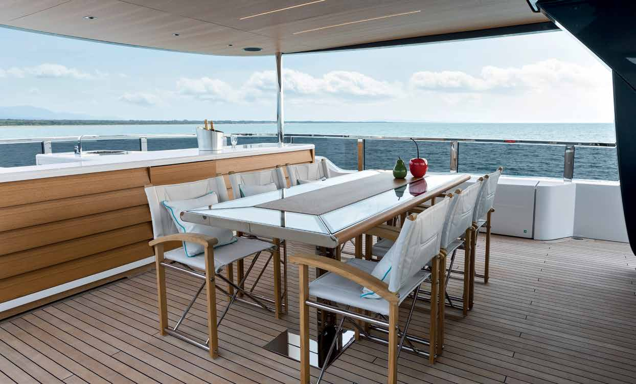 4EVA: ~Up to 30 guests for quayside events ~Foredeck infinity pool ~Sundeck wet bar ~Beach club with wet bar ~Skylounge cinema ~Abundant sunbathing areas ~Extensive water toys selection ~Massive cruising range of 4,500 ...