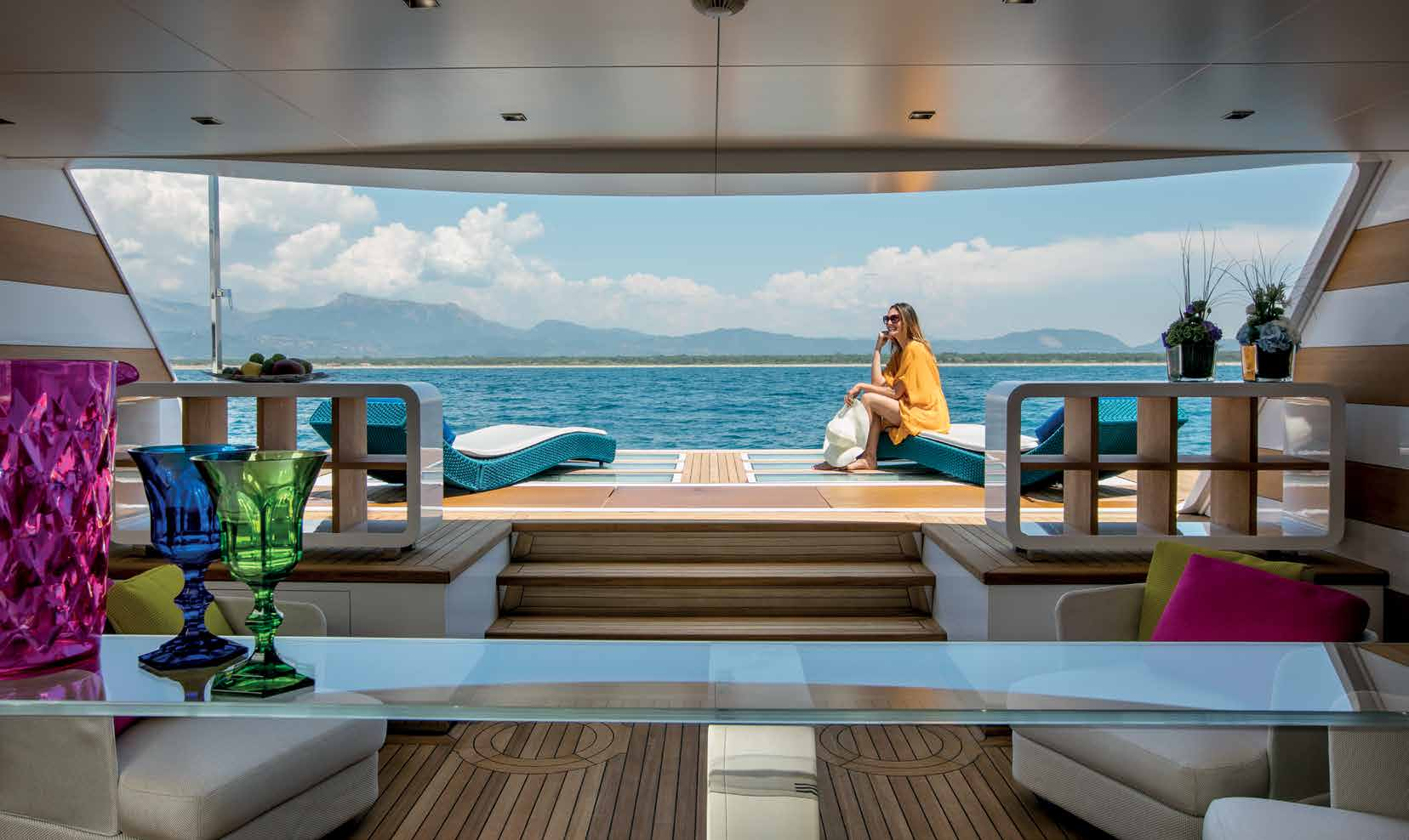 4EVA: ~Up to 30 guests for quayside events ~Foredeck infinity pool ~Sundeck wet bar ~Beach club with wet bar ~Skylounge cinema ~Abundant sunbathing areas ~Extensive water toys selection ~Massive cruising range of 4,500 ...