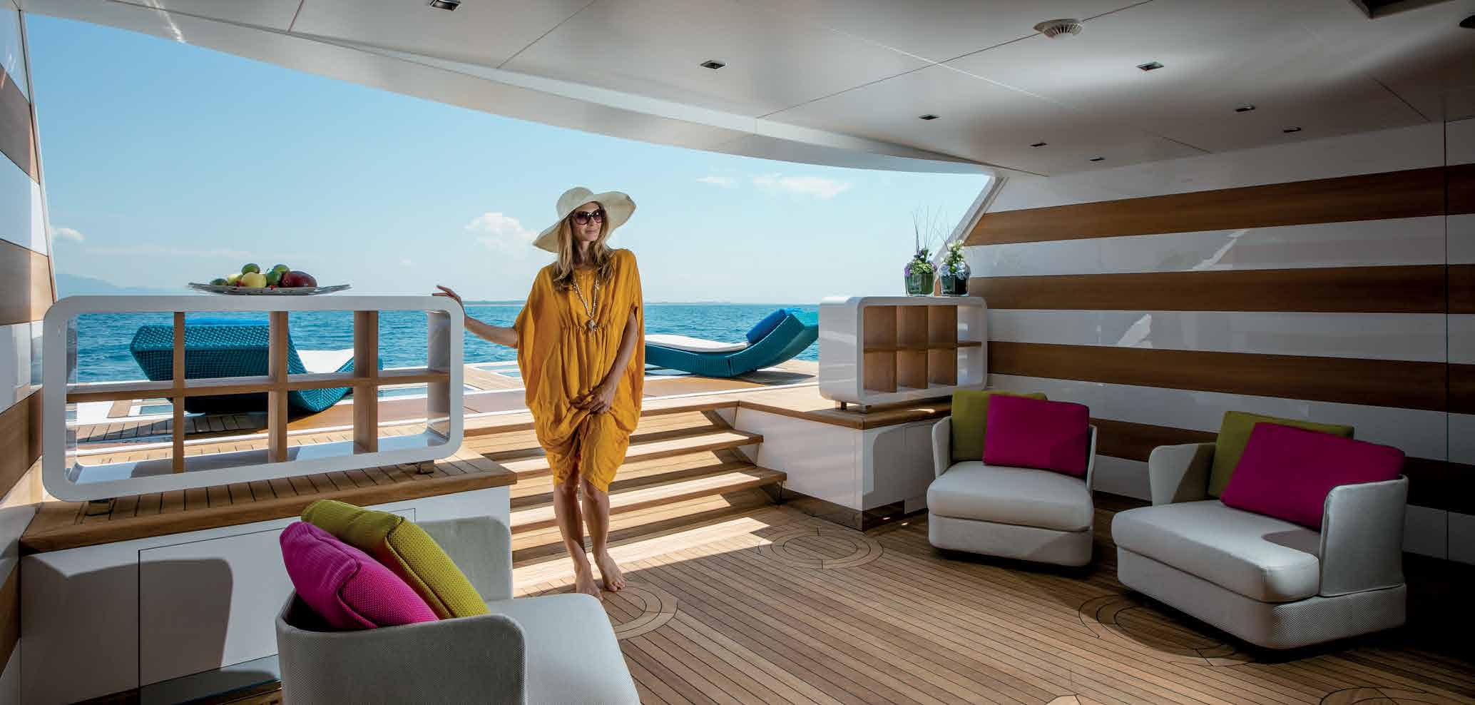 4EVA: ~Up to 30 guests for quayside events ~Foredeck infinity pool ~Sundeck wet bar ~Beach club with wet bar ~Skylounge cinema ~Abundant sunbathing areas ~Extensive water toys selection ~Massive cruising range of 4,500 ...