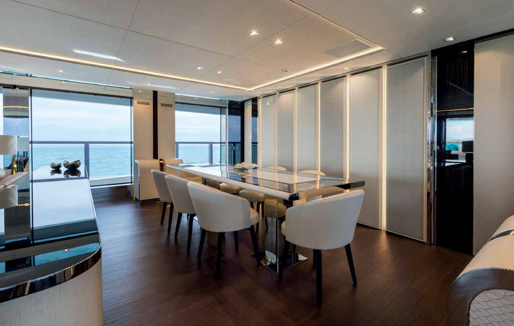 4EVA: ~Up to 30 guests for quayside events ~Foredeck infinity pool ~Sundeck wet bar ~Beach club with wet bar ~Skylounge cinema ~Abundant sunbathing areas ~Extensive water toys selection ~Massive cruising range of 4,500 ...