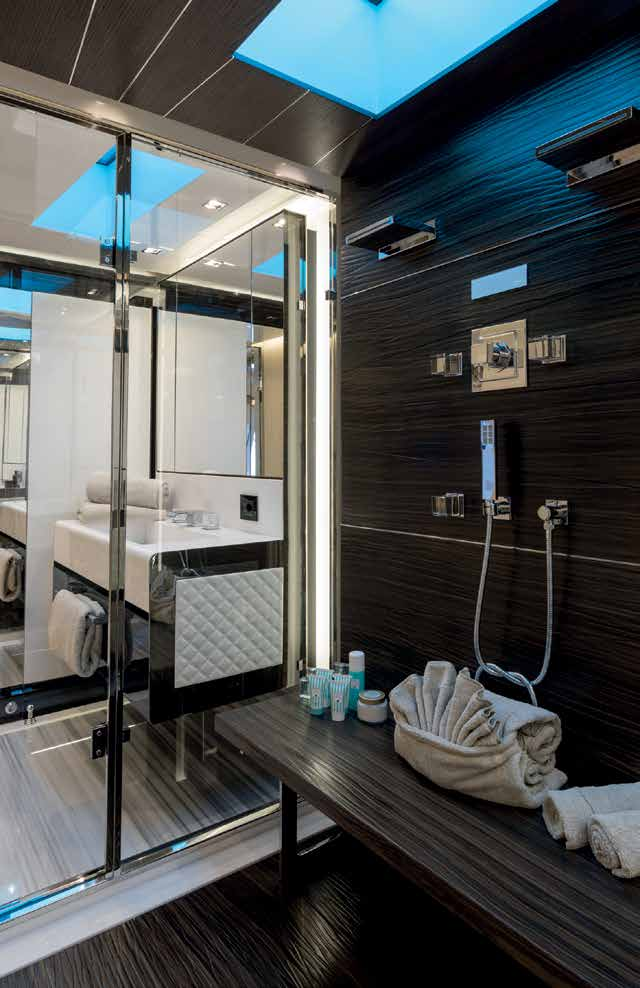 The double cabins are placed on the lower deck to port and starboard aft of amidships. Both have a double bed, a widescreen TV adjacent, a large ...