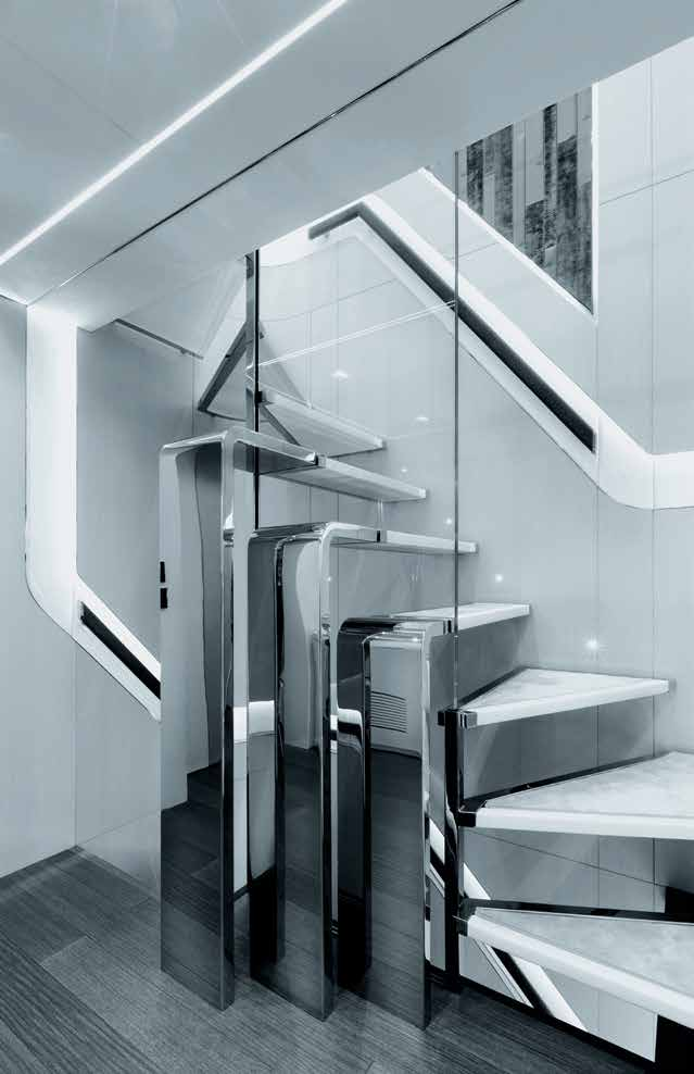 Sun loungers are placed along the stern and the sun-drenched alfresco lounge behind consists of three sofas surrounding a coffee table. One last intimate alfresco dining area can be found amidships on the sundeck beneath the ...