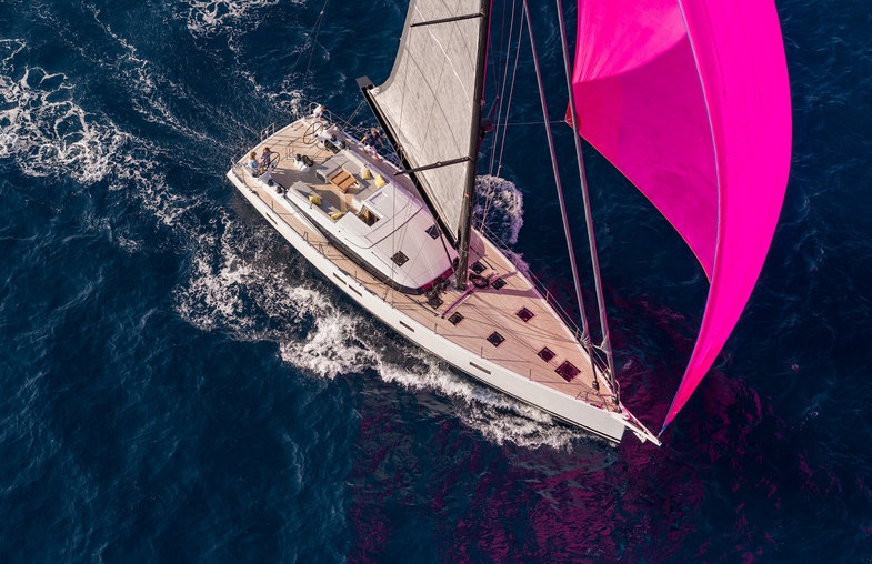 A deck shower and swim platform are placed aft, and the forward section can be used for sunbathing and exercise such as yoga while at anchor.