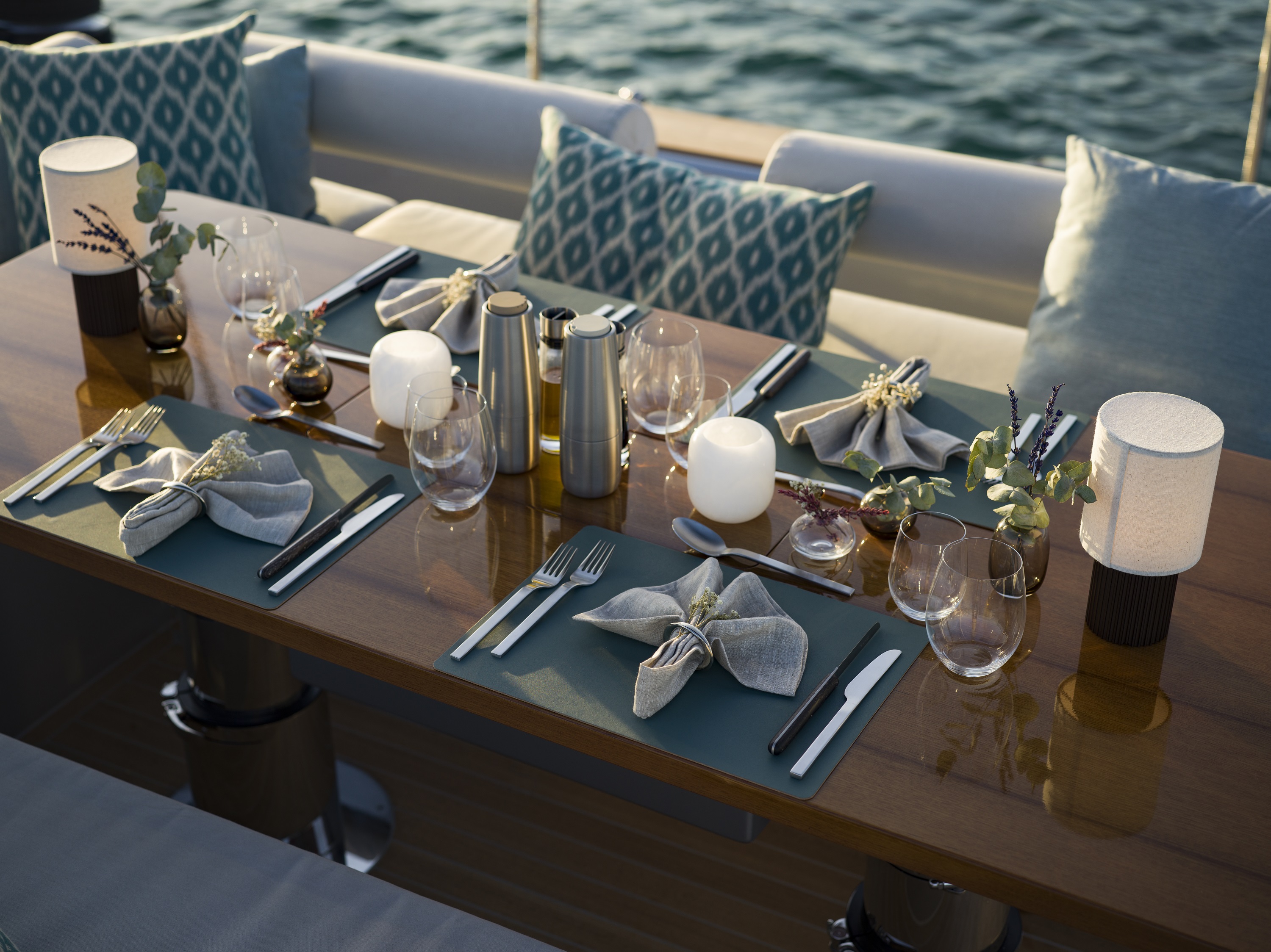 NOTABLE FEATURES OF ONYX: ~Semi-raised salon with lots of natural light ~Al fresco dining tables and couches ~Full-beam Master cabin ~En-suite bathrooms ~WiFi ~Air conditioning