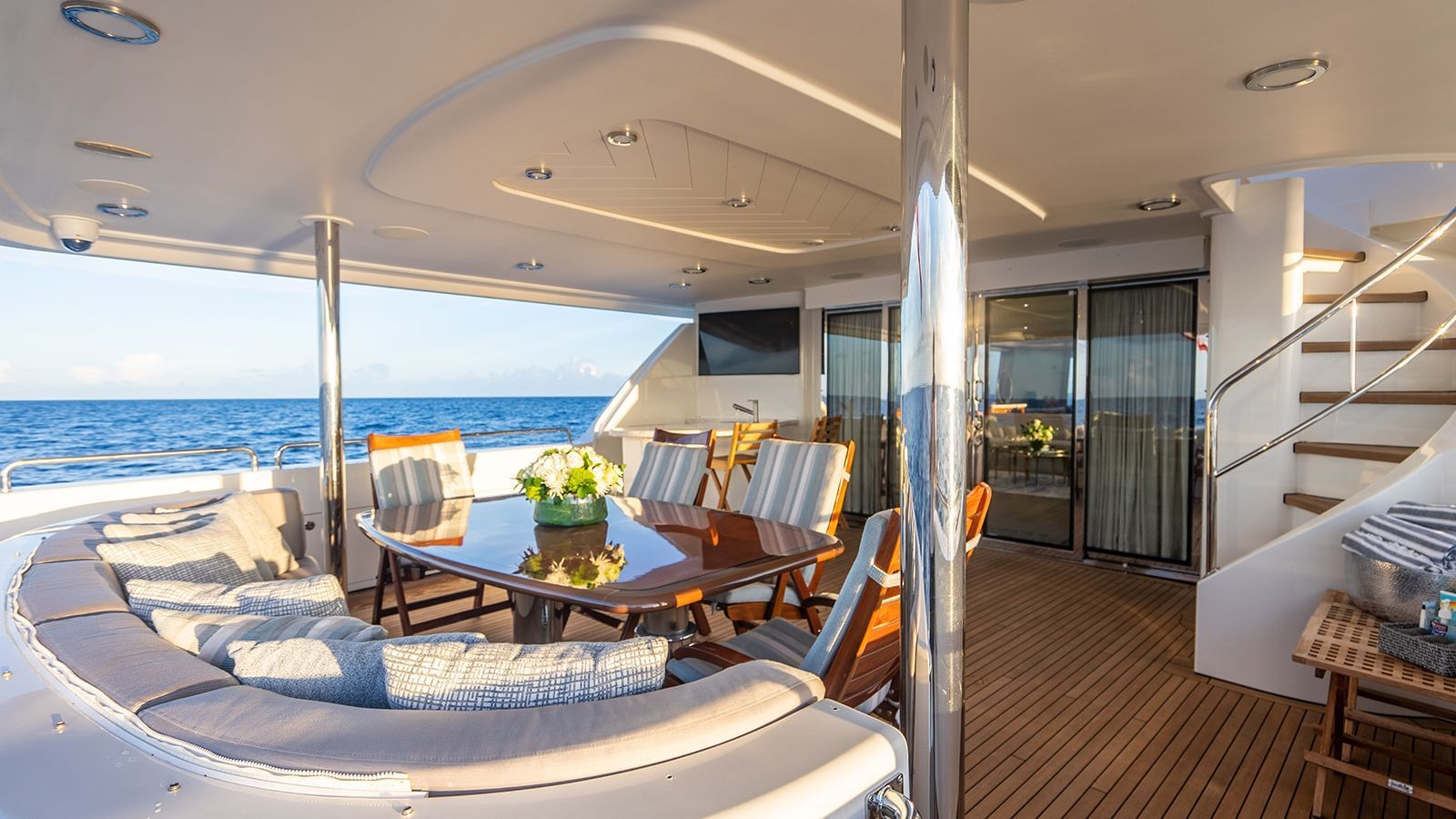 NOTABLE FEATURES OF KEMOSABE: ~Stunning décor ~Spacious flybridge deck with jacuzzi ~Swim platform ...