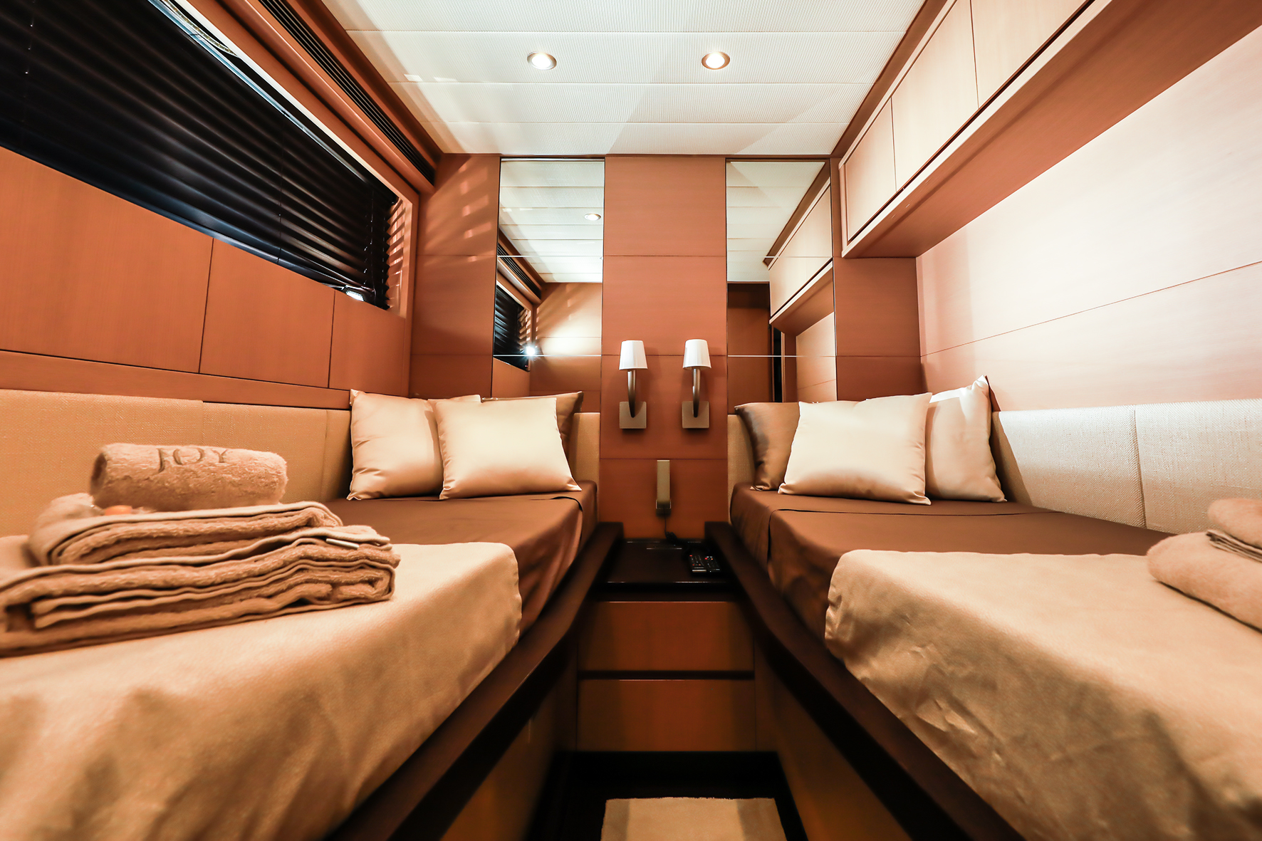 With a length of 24.00m (78' 9") she can accommodate up to 8 guests in 4 ensuite cabins, with additional accommodation for her professional crew of 3 on board.