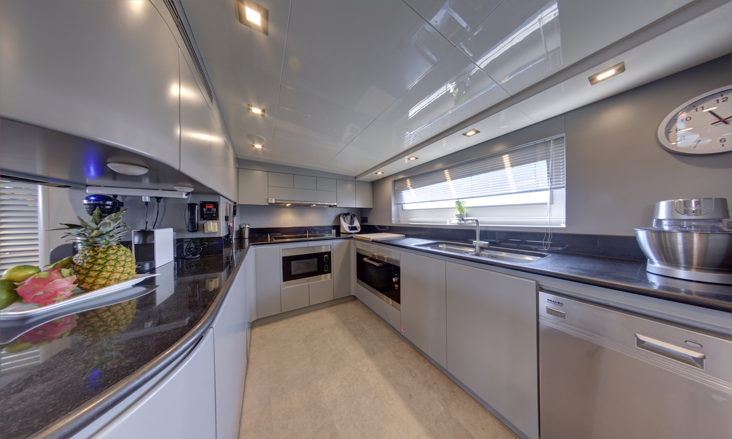 Amidships a Jacuzzi is to starboard and a bar opposite, and forward the Pilot and co-Pilot seats give guests an additional place to sit and enjoy the views.