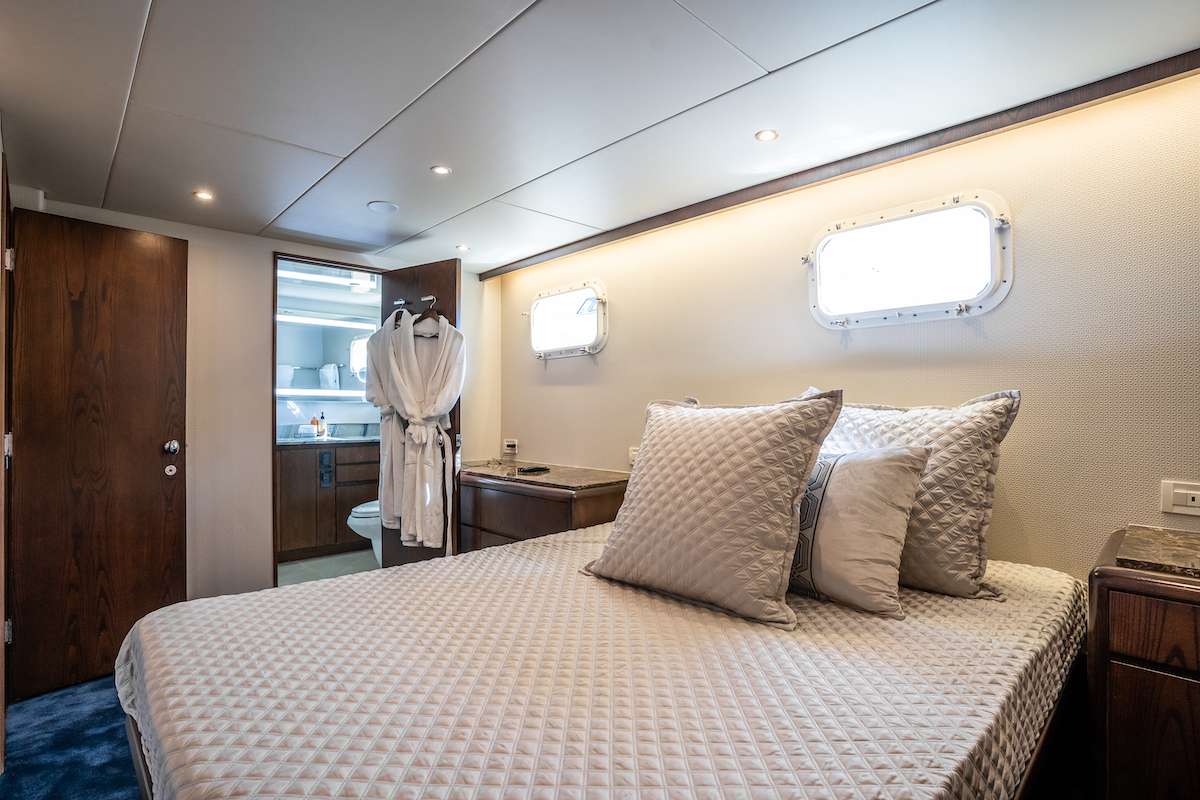 Her interiors are by Freestyle Interiors and can accommodate up to 12 guests in 5 cabin with additional cabins for her professional and friendly crew of 5.