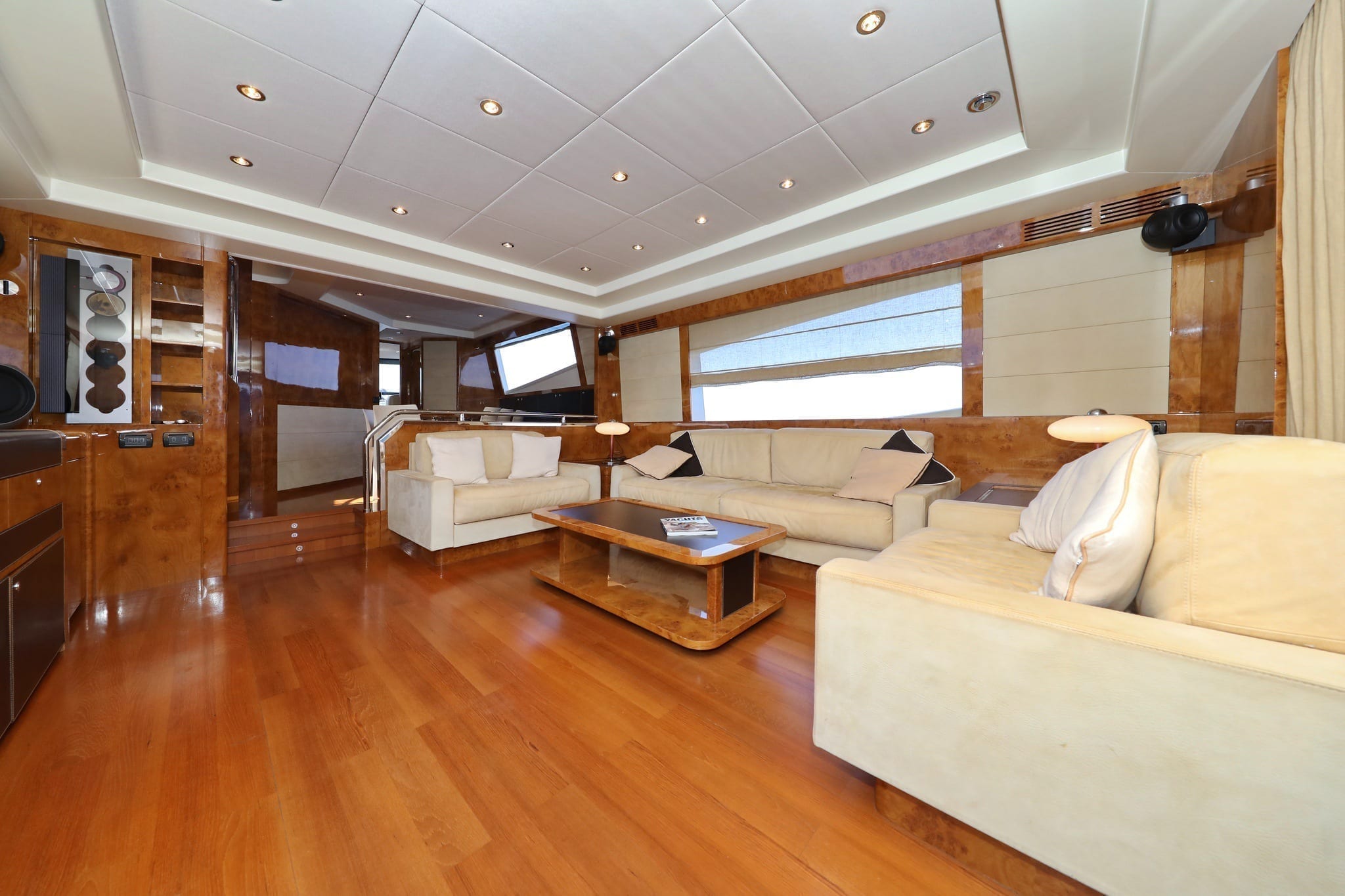 The lower deck hosts the guest and crew accommodation along with the engine room. On the main deck, the forward area hosts the dining area which can seat up to eight guests.