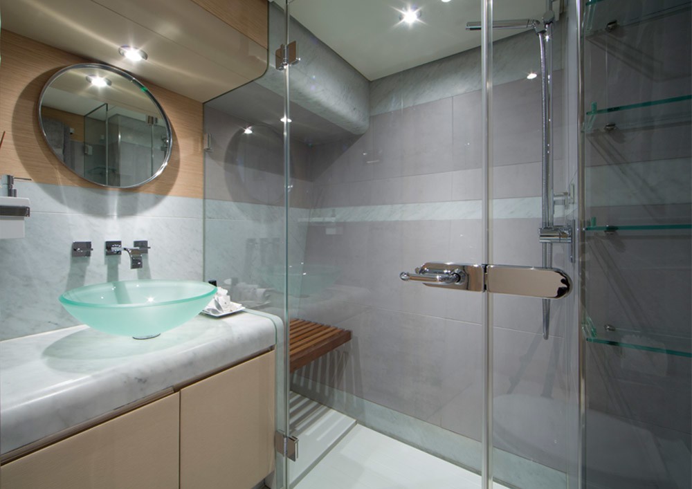 M/Y RENEGADE’s owner’s quarters are forward on the main deck.