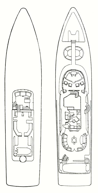 The captain’s cabin and the first mate’s cabin are housed on the upper deck, aft of the raised wheelhouse.