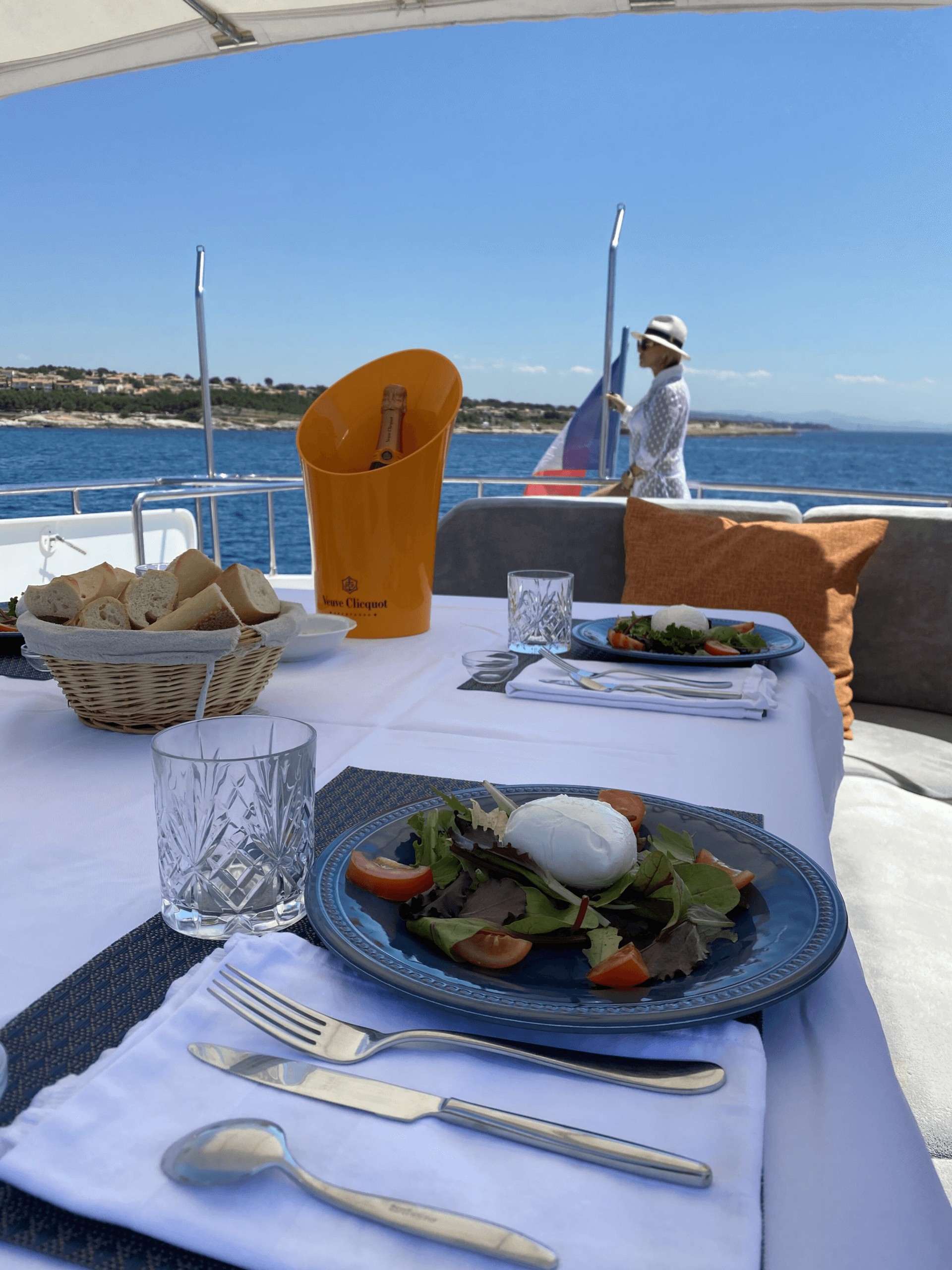 Two stairways lead down to the lower deck swim platform for access to the tender and water toys, and side walkways take guests around to the foredeck sunbed.