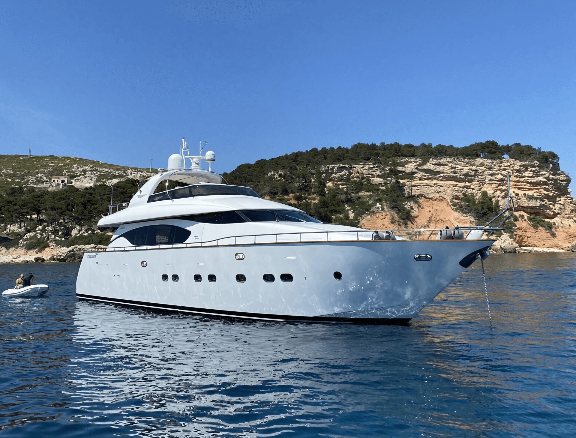 Motor yacht GAMA measures 23.00m (75' 6”) and was built by the Italian Maiora shipyard in 2003, with refit in 2019. Accommodation spreads over 3 cabins for up to 6 guests, with additional cabins for a crew of 2.