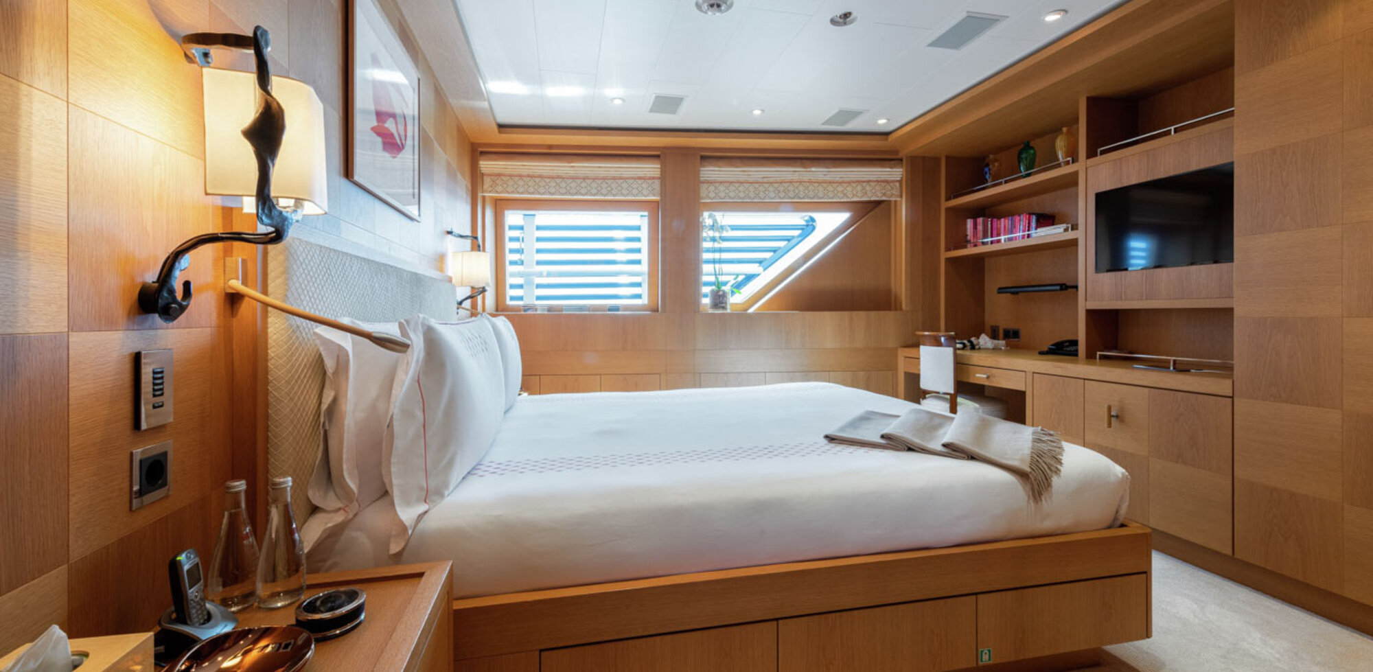 She can accommodate up to 12 guests in nine elegant suites and an impressive crew of twenty-four.