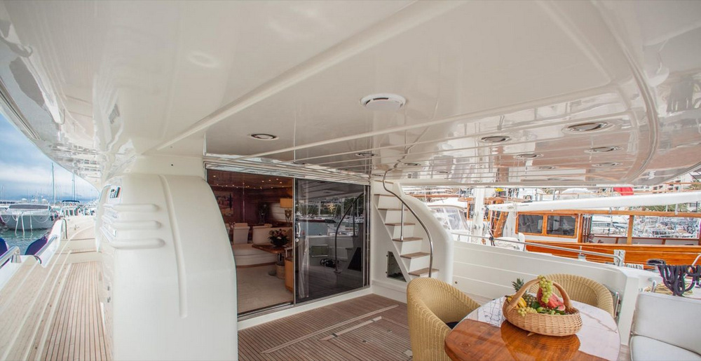 NOTABLE FEATURES OF ELECON: ~Spacious flybridge ~Top speed of 27 knots ~Great selection of water toys ~Draft of only 1.7m/5.6ft to navigate shallow waterways ~Air conditioning ~Wi-Fi