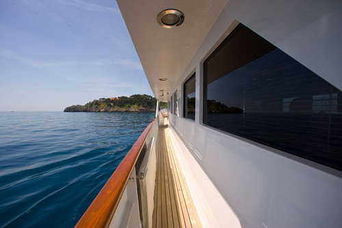 The main deck aft offers a comfortable place to unwind outside on the seating and savour the fresh sea air.