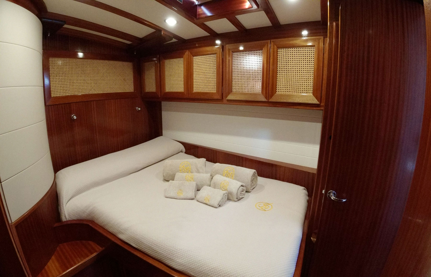 Accommodation on board is available for up to 10 guests in 5 cabins, with additional cabins for a crew of 3.