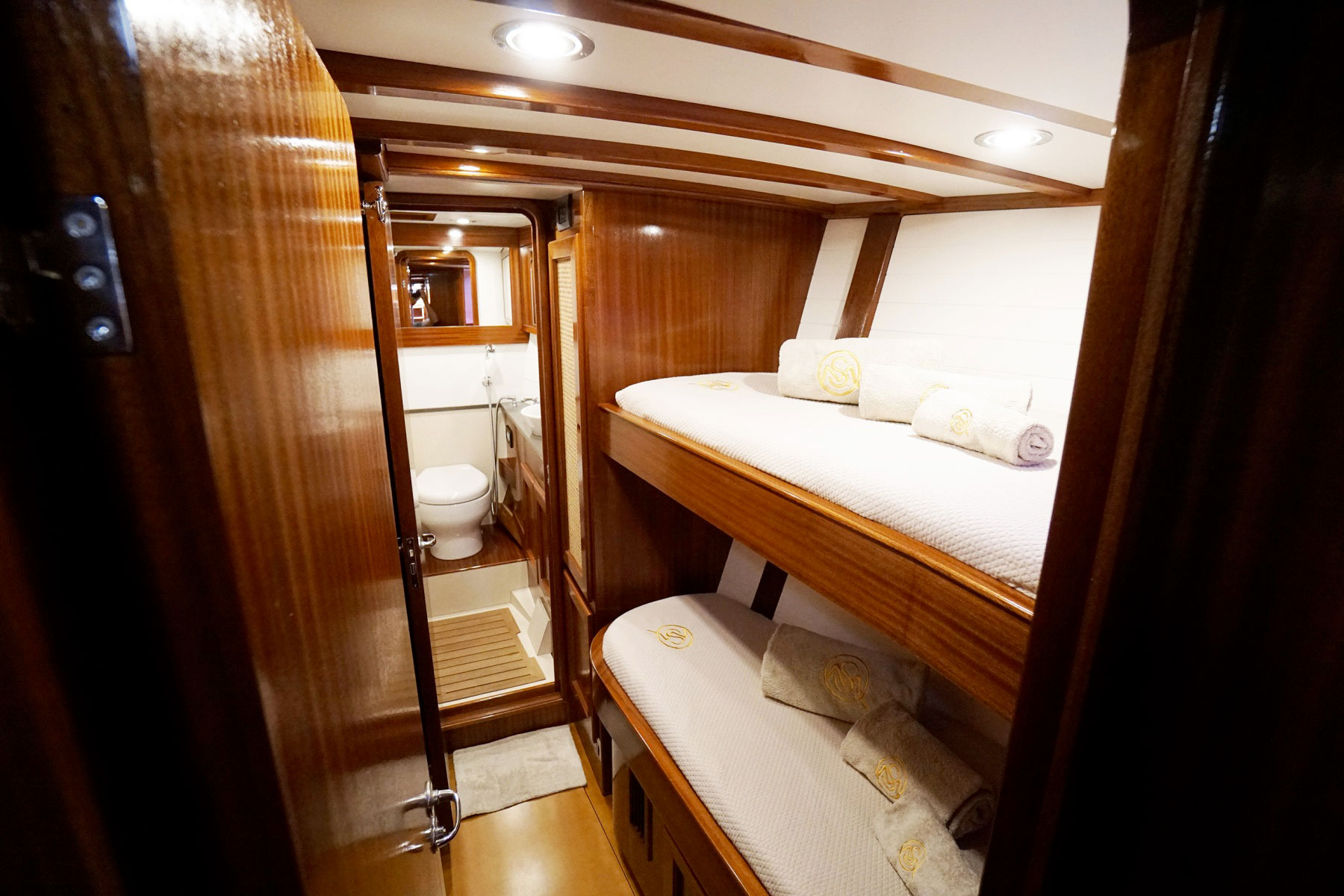 Accommodation on board is available for up to 10 guests in 5 cabins, with additional cabins for a crew of 3.