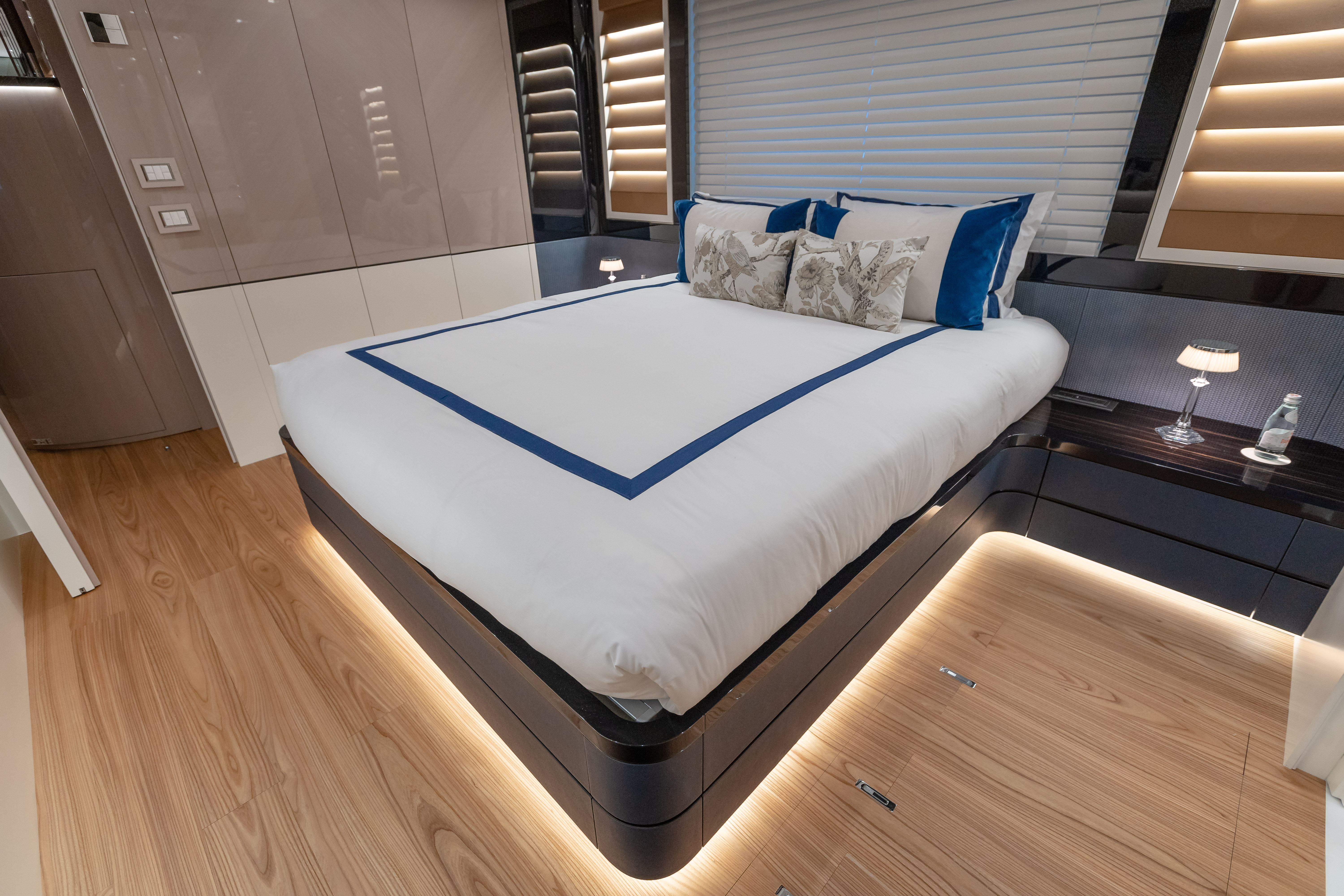 Quadruple Volvo Penta D13 engines each producing 1,000 HP give a maximum speed of 25 knots, a cruising speed of 20 knots and a range of 400 nautical ...