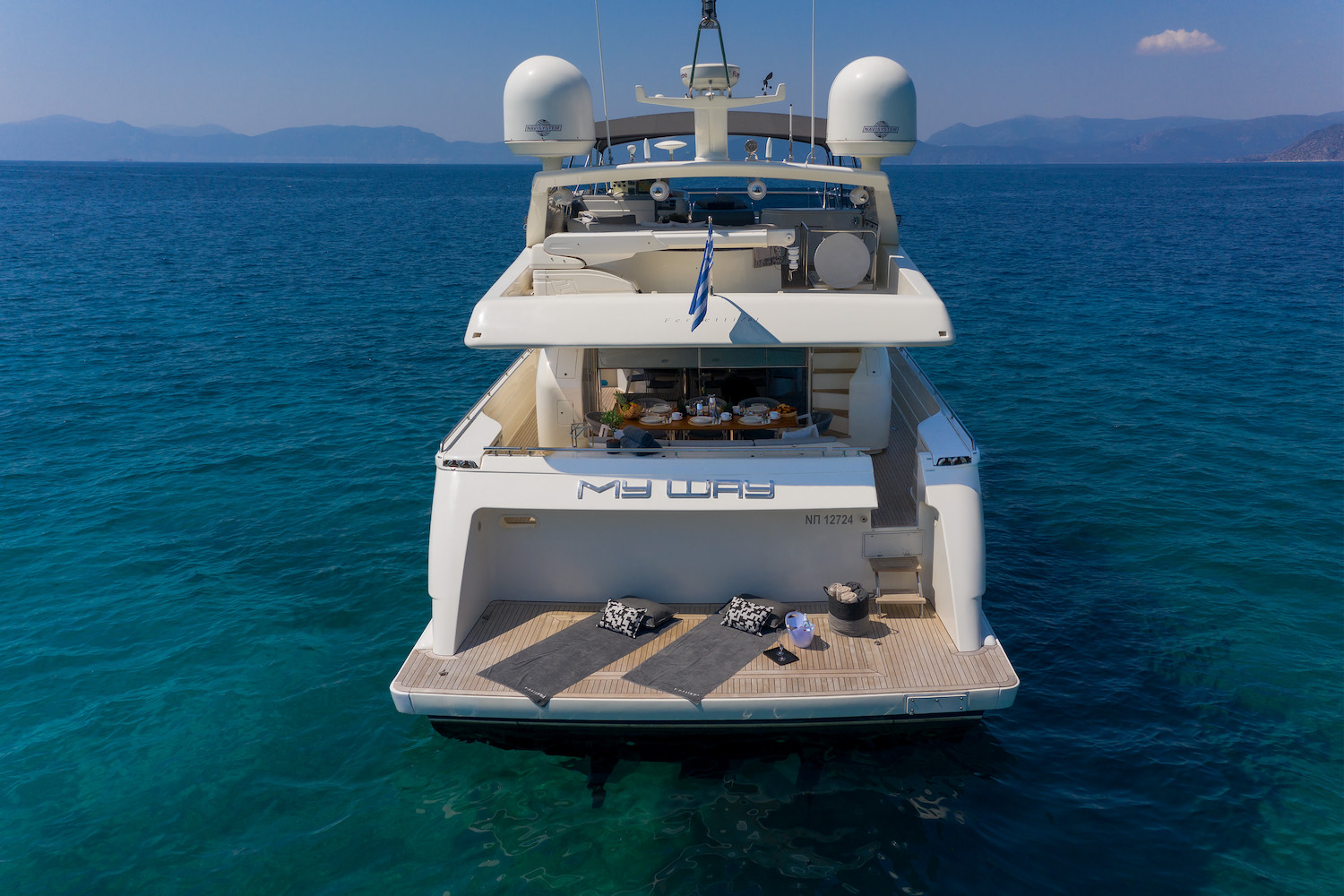 Motor yacht MY WAY by Ferretti was built in 2006 and refitted in 2021. She measure 23.45m (76' 11") and accommodates up to 8 charter guests in 4 cabins and has a crew of 4.