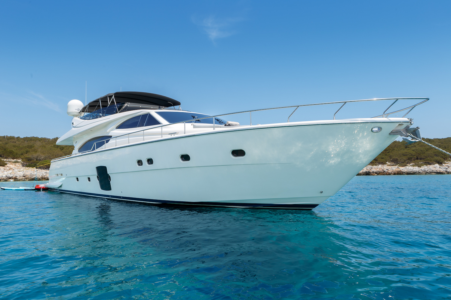 Motor yacht MY WAY by Ferretti was built in 2006 and refitted in 2021. She measure 23.45m (76' 11") and accommodates up to 8 charter guests in 4 cabins and has a crew of 4.