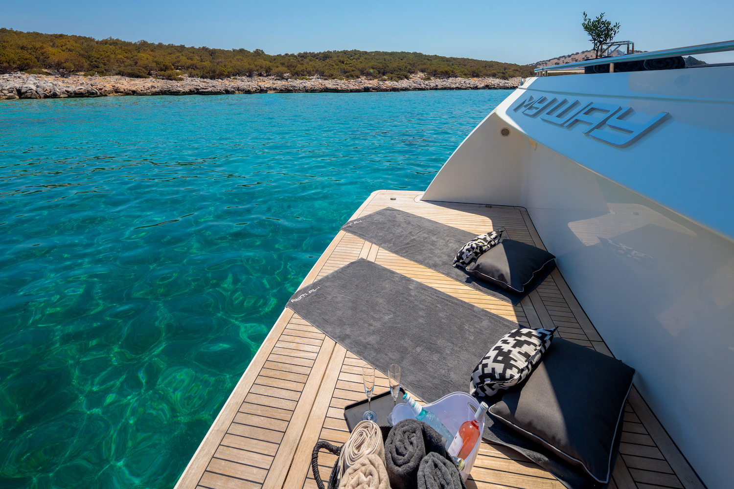 The foredeck can be accessed via the side walkways from around the main deck aft, and this area provides two ...