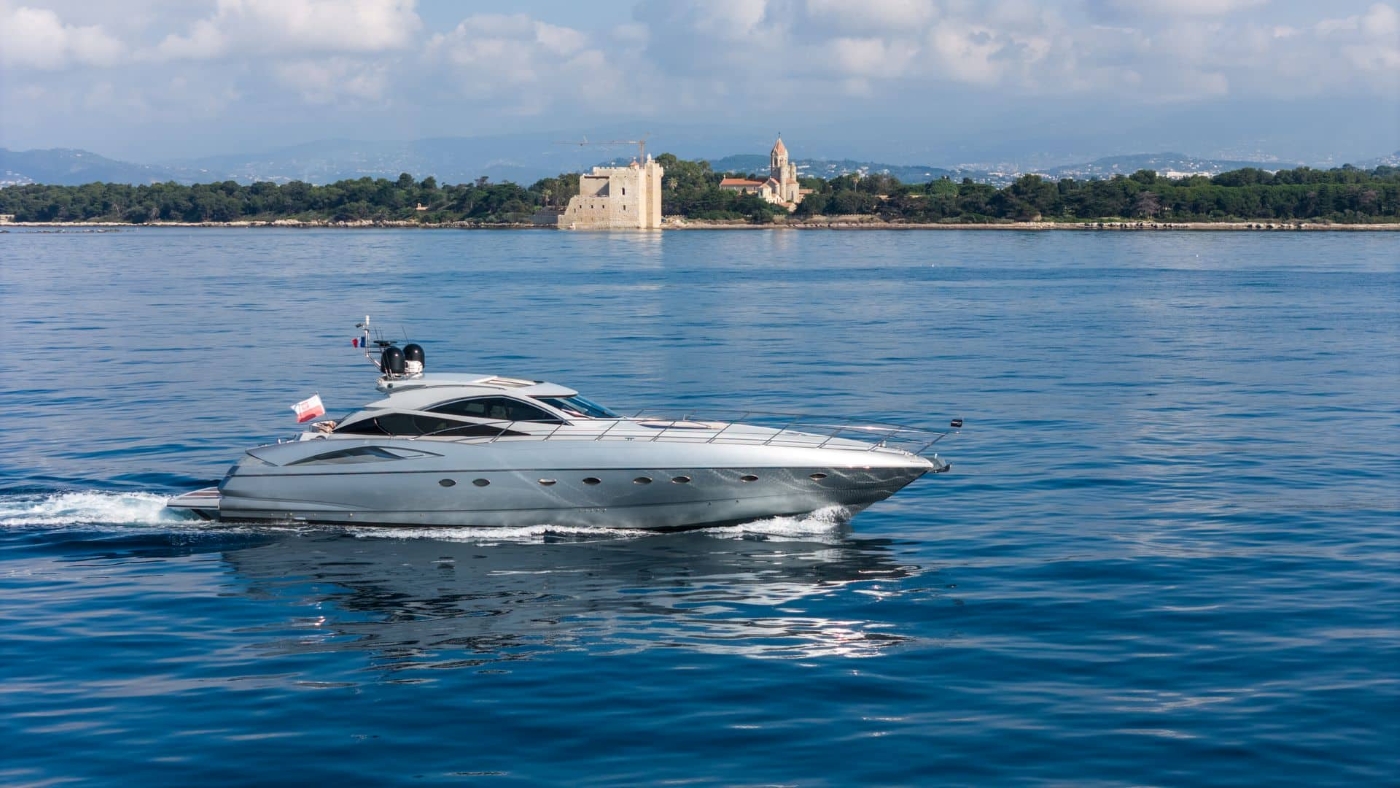A pair of MAN V12 1,200 HP engines grant a top speed of 38 knots and a cruising speed ...
