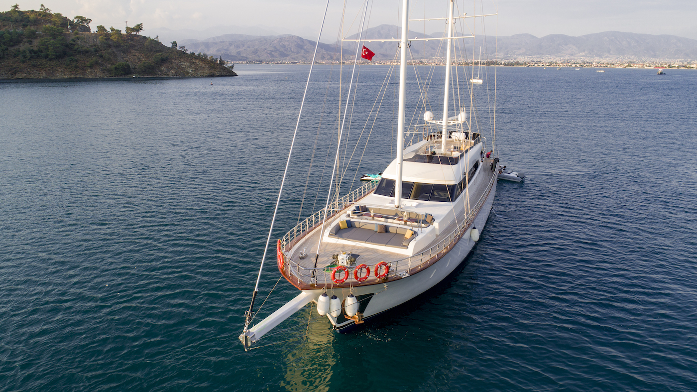 Motor sailer QUEEN OF MAKRI provides yacht charters in Europe, Turkey, Greece, Fethiye, East Med, and Cyclade Islands.