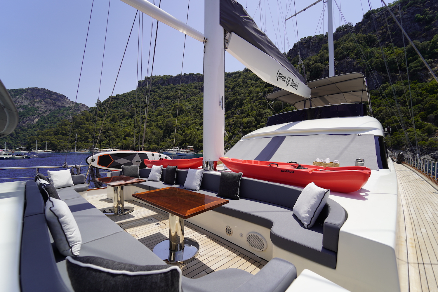 Motor sailer QUEEN OF MAKRI provides yacht charters in Europe, Turkey, Greece, Fethiye, East Med, and Cyclade Islands.