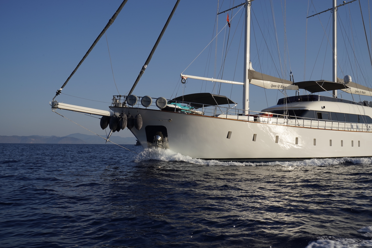 Motor sailer QUEEN OF MAKRI provides yacht charters in Europe, Turkey, Greece, Fethiye, East Med, and Cyclade Islands.