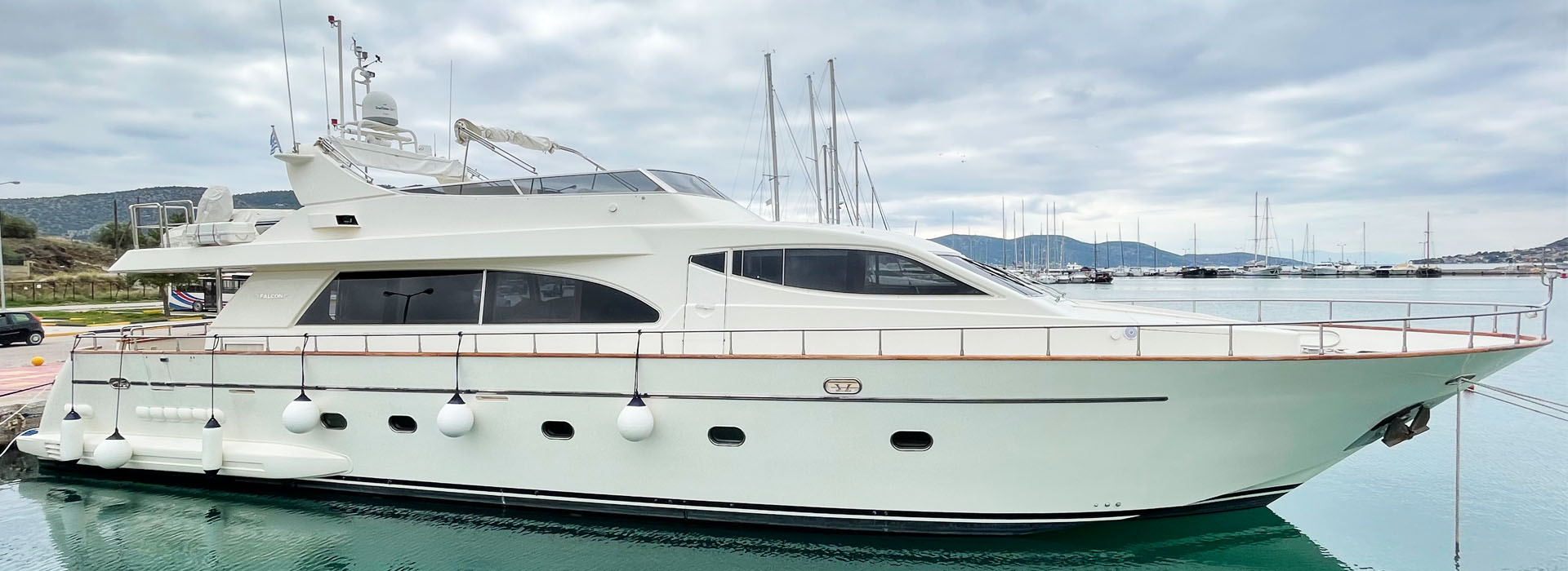 Motor yacht ESTIA POSEIDON measures 26.10m (85’8’’) and was built by Falcon in 2006, refitted in 2021. The yacht accommodates up to 10 guests in 4 cabins with additional accommodation for a crew of 5.