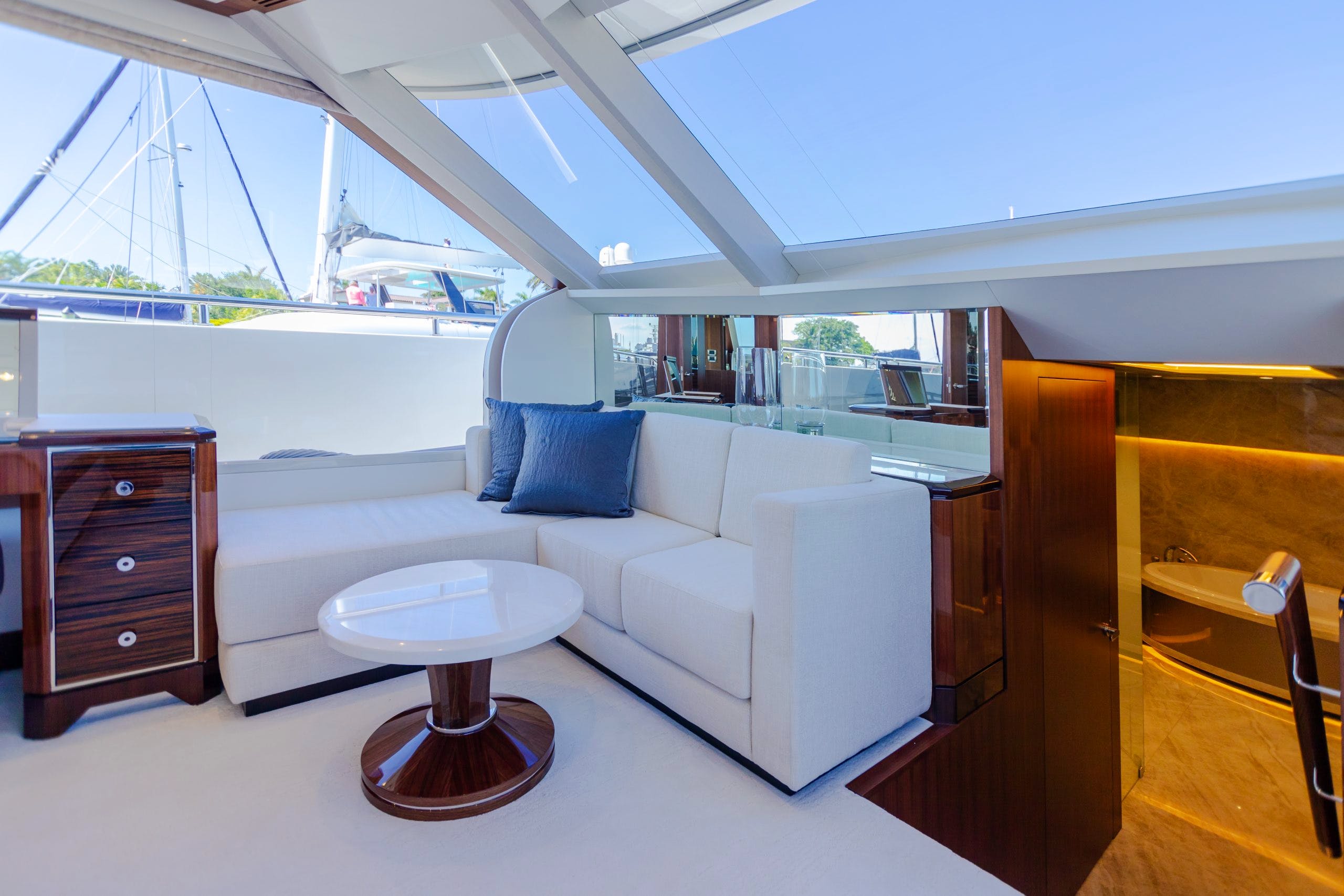 On the sundeck, there is a large Jacuzzi forward with a sunbed on both sides.