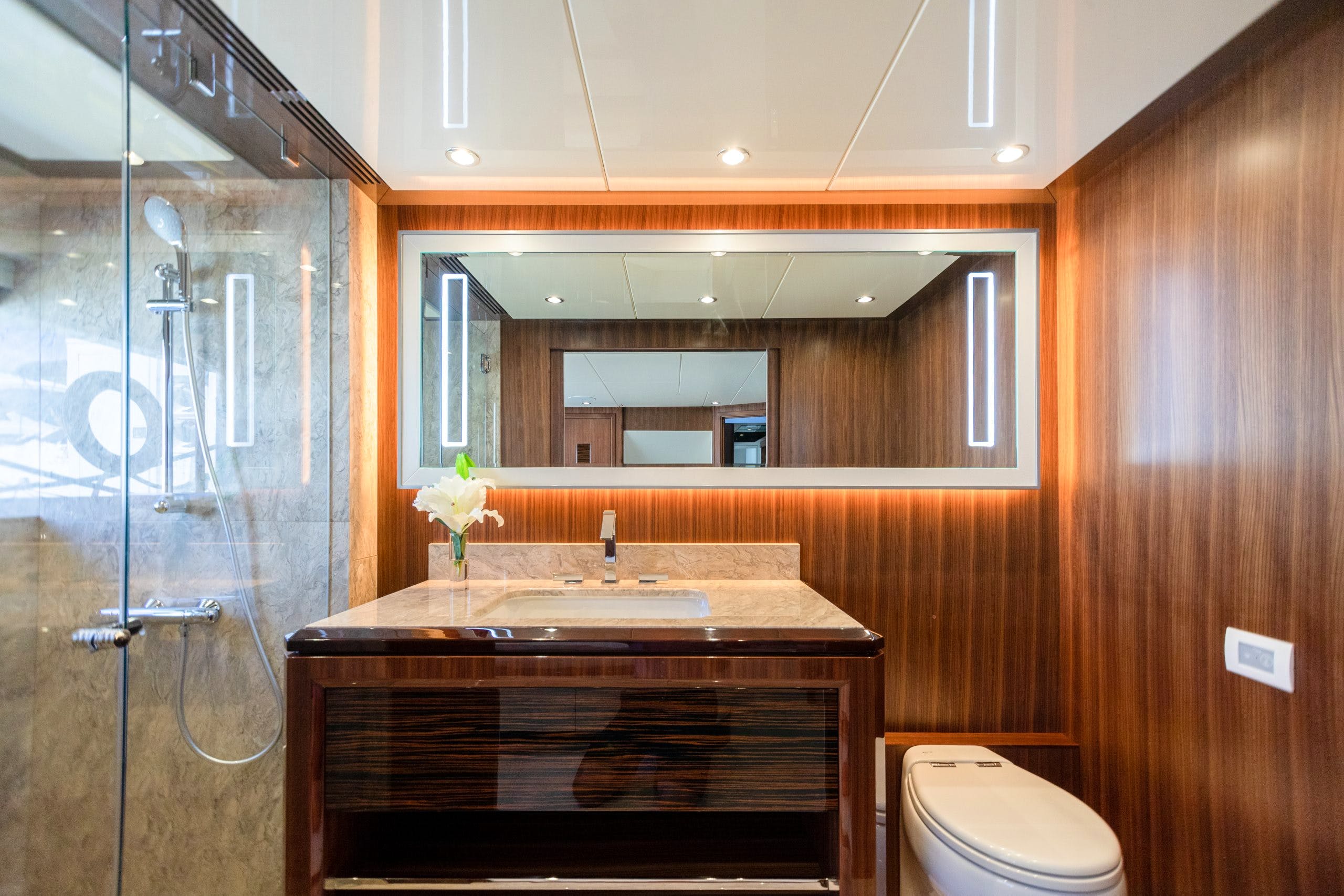 She sleeps up to 10 charter guests in 5 deluxe ensuite staterooms, with further cabins on board that accommodate a professional crew.