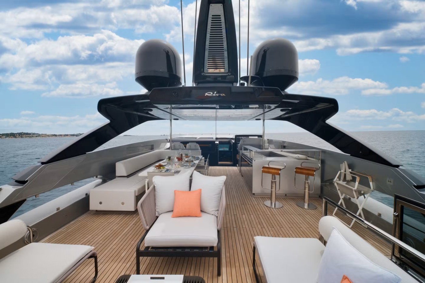 NOTABLE FEATURES OF BASILIC: ~Abundance of sunbathing areas ~Flybridge wet bar ~Great selection of water toys ~2m/6.6ft ceiling height in guest cabins ~Top speed of 28 knots ~Air conditioning ~Wi-Fi